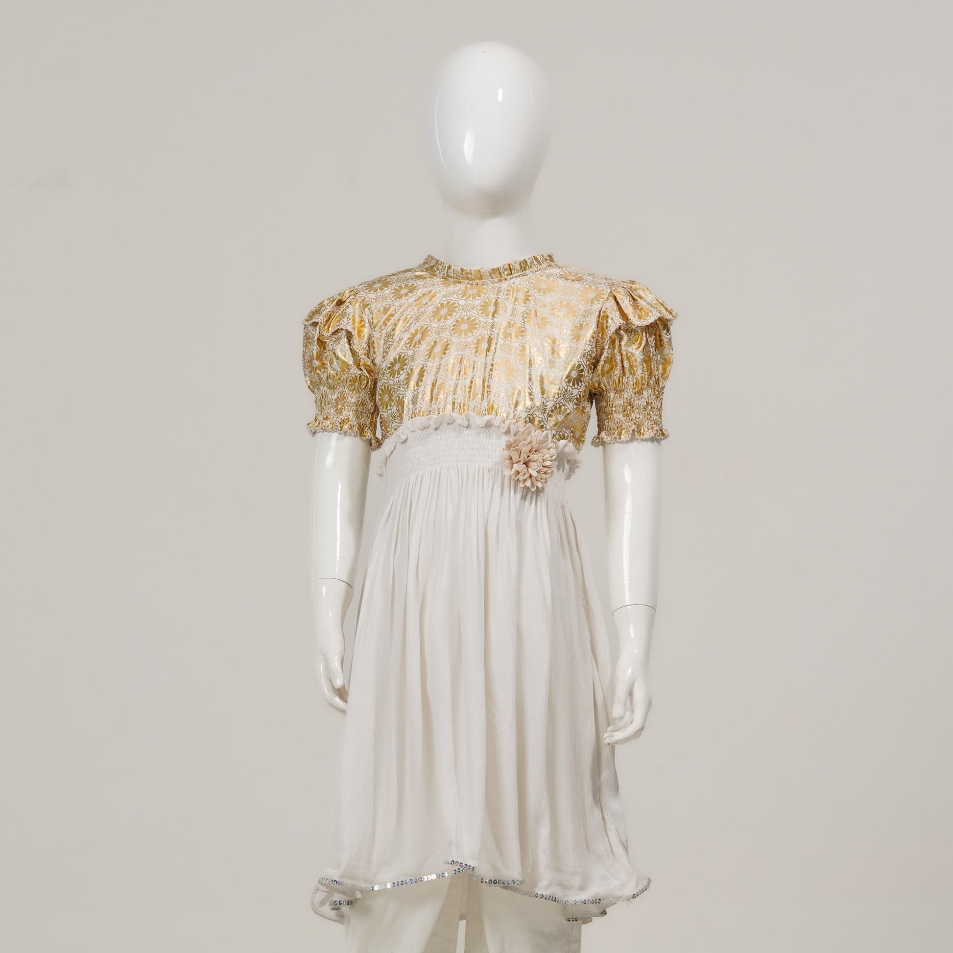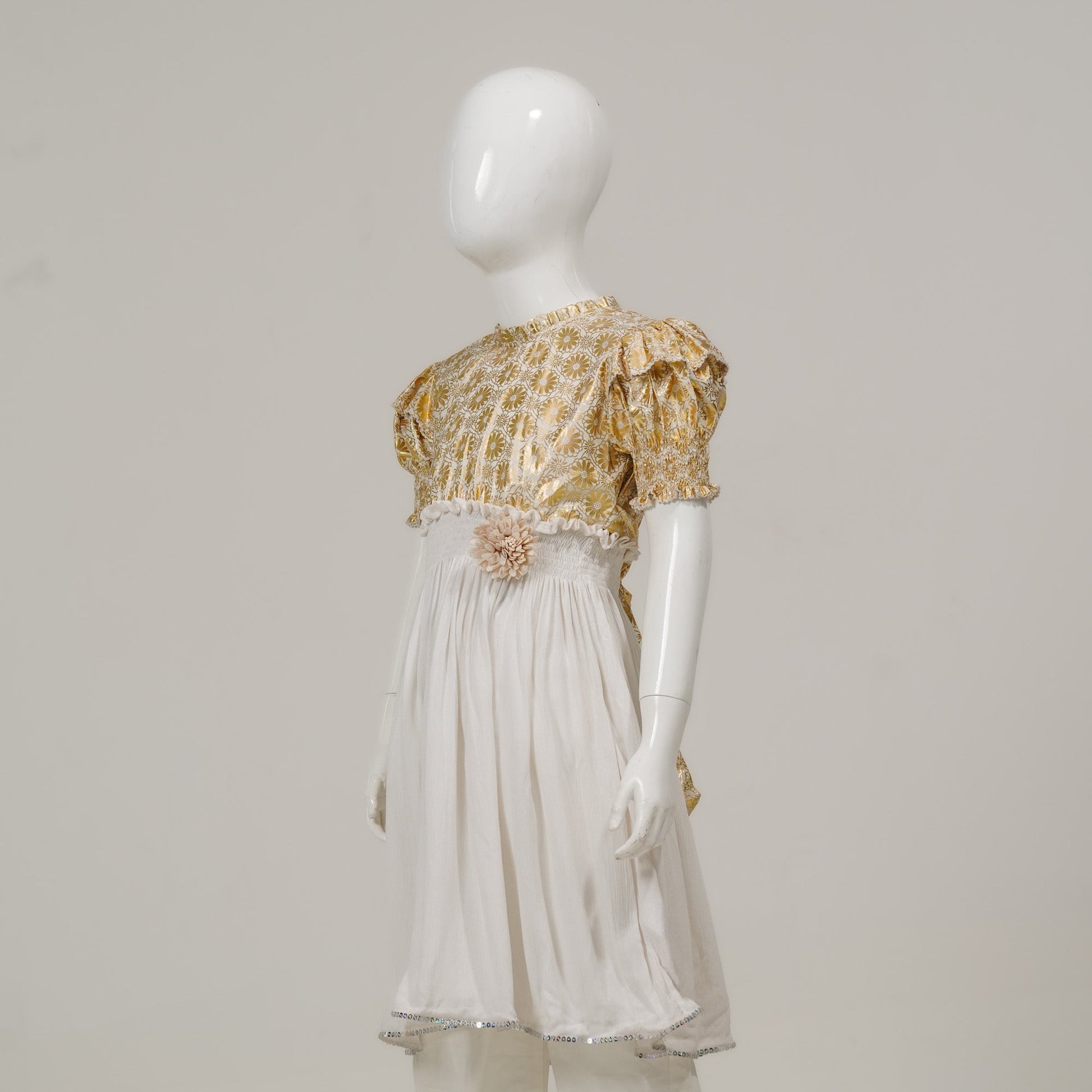 Girls White & Golden Frock