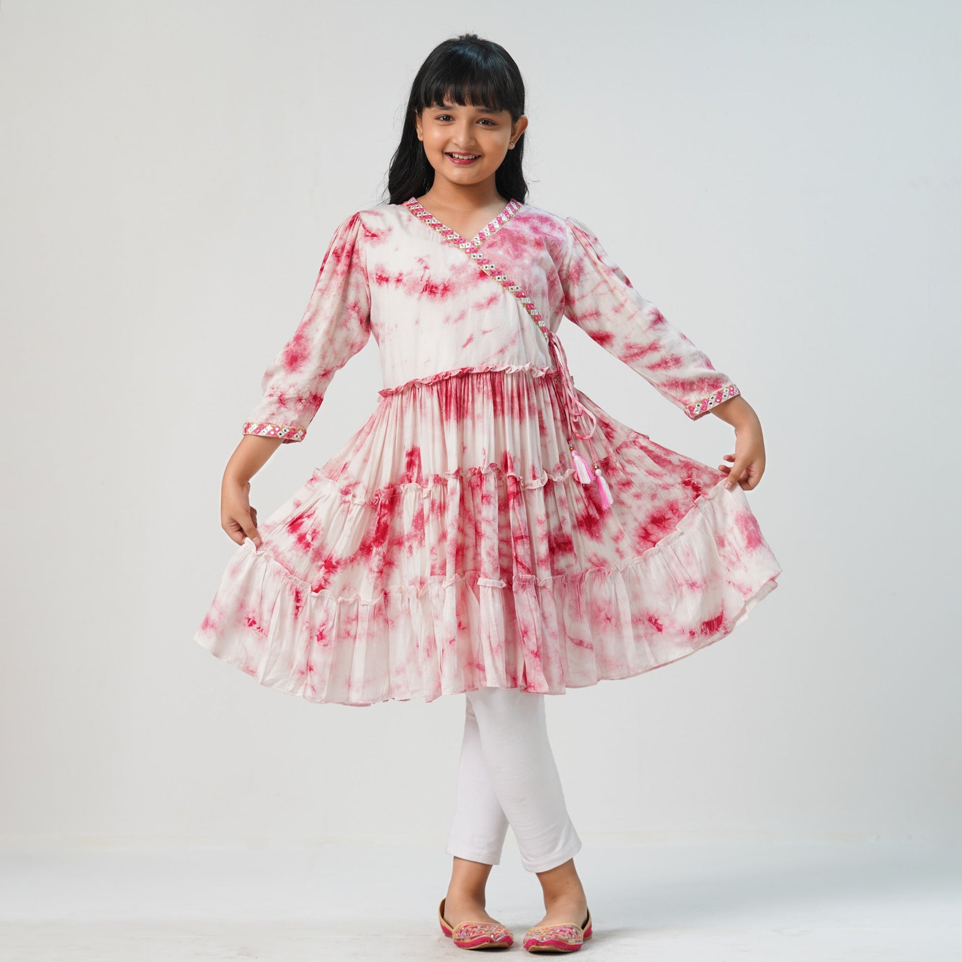 This trendy frock is made from breathable linen fabric, featuring a stylish tie-dye pattern and delicate embroidery for a charming look. Perfect for any celebrations and special occasions, it offers both elegance and comfort. A must-have for a fashionable festive wardrobe.