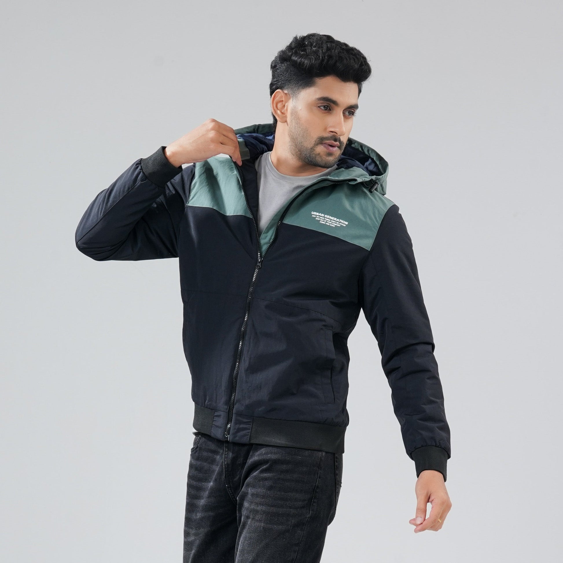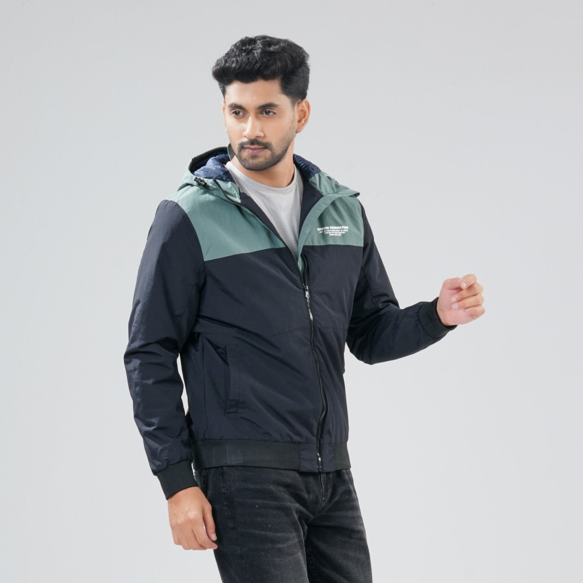Stay comfortable and protected with this mens black & green windbreaker, made from 100% polyester for a lightweight and durable feel. Designed with a sleek finish, it offers excellent wind resistance and all-day comfort. Perfect for layering during outdoor activities or casual outings.