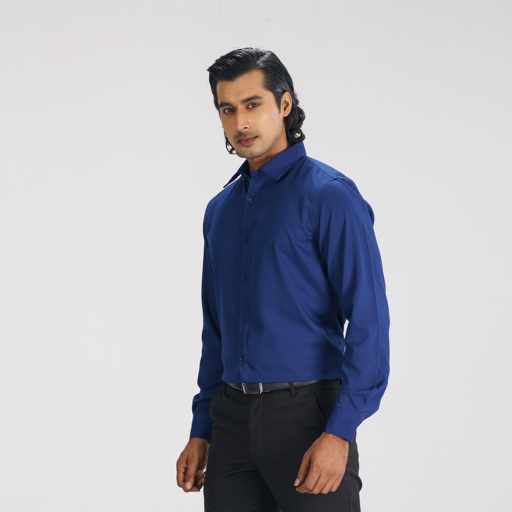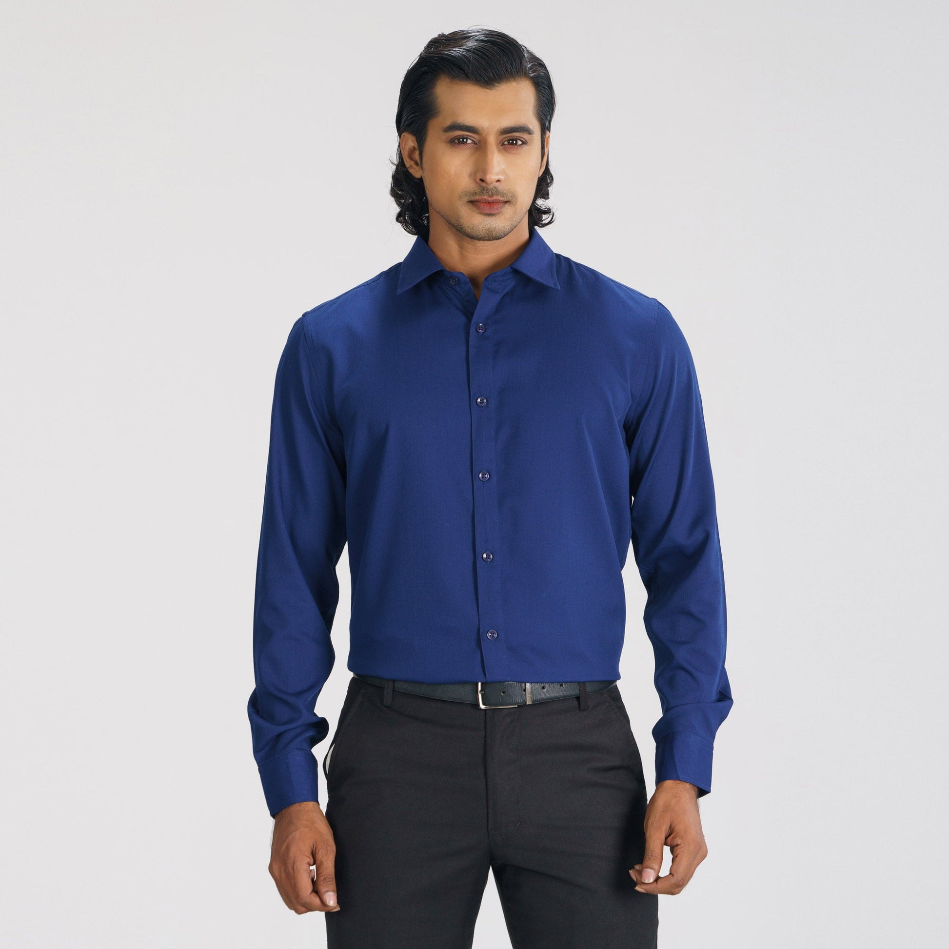 This men’s navy formal shirt is designed for a classic and polished look. Made from a poly-cotton blend, it features a regular fit that ensures all-day comfort. Perfect for office wear or formal occasions, this shirt is a timeless wardrobe essential.
