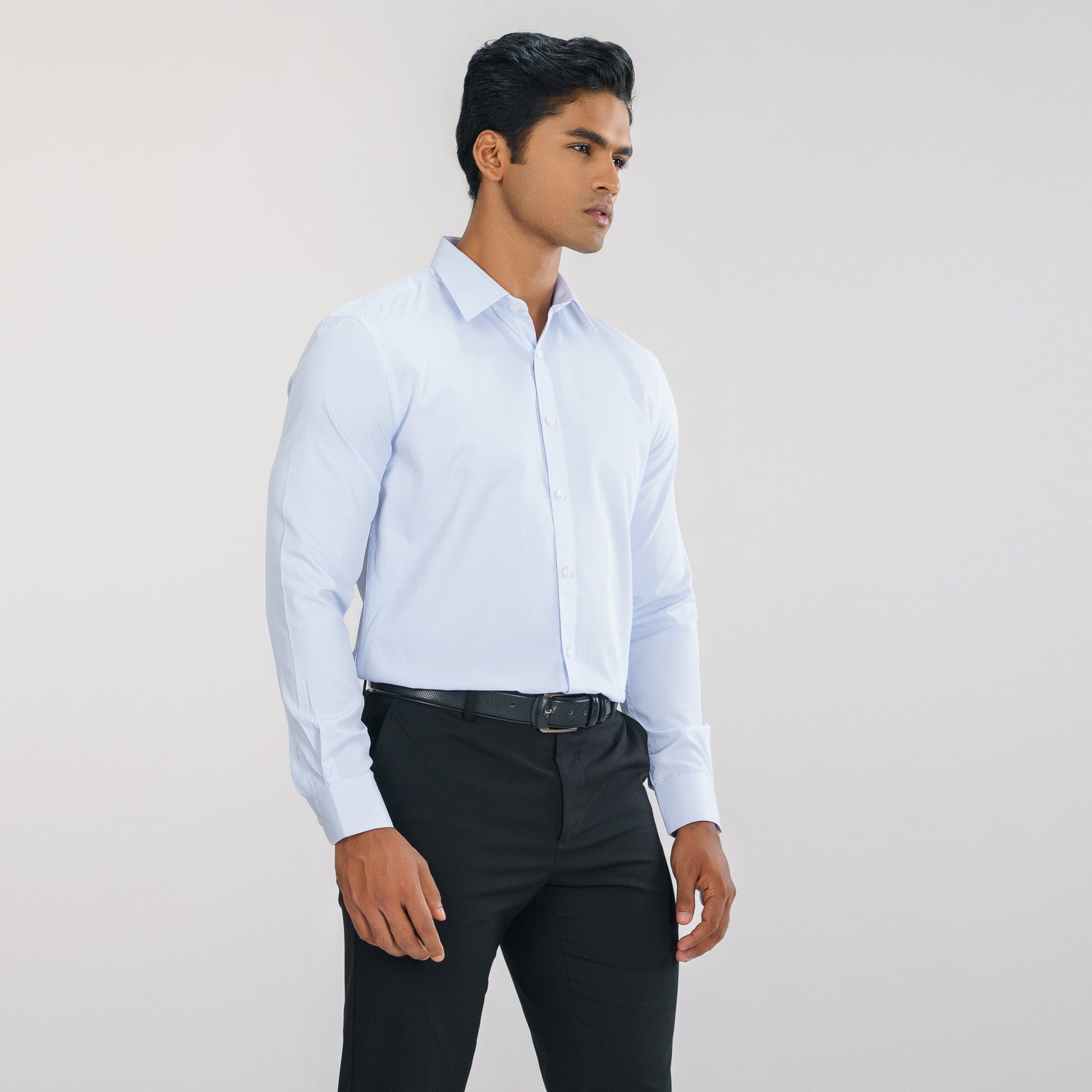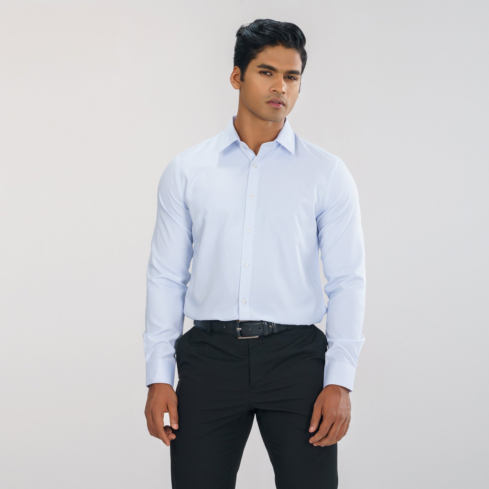 This men’s white sky formal shirt offers understated elegance with its cotton jacquard fabric. Designed in a regular fit, it combines comfort and sophistication, making it ideal for office wear or formal occasions. A versatile addition to any wardrobe.