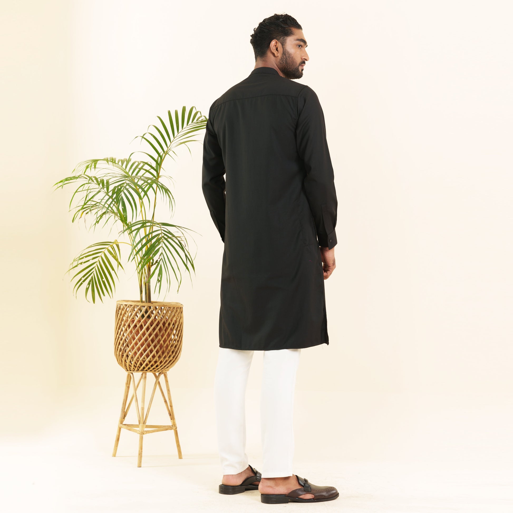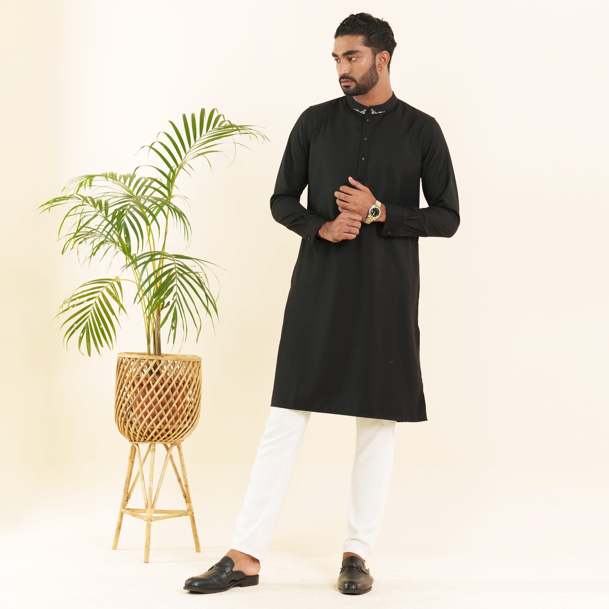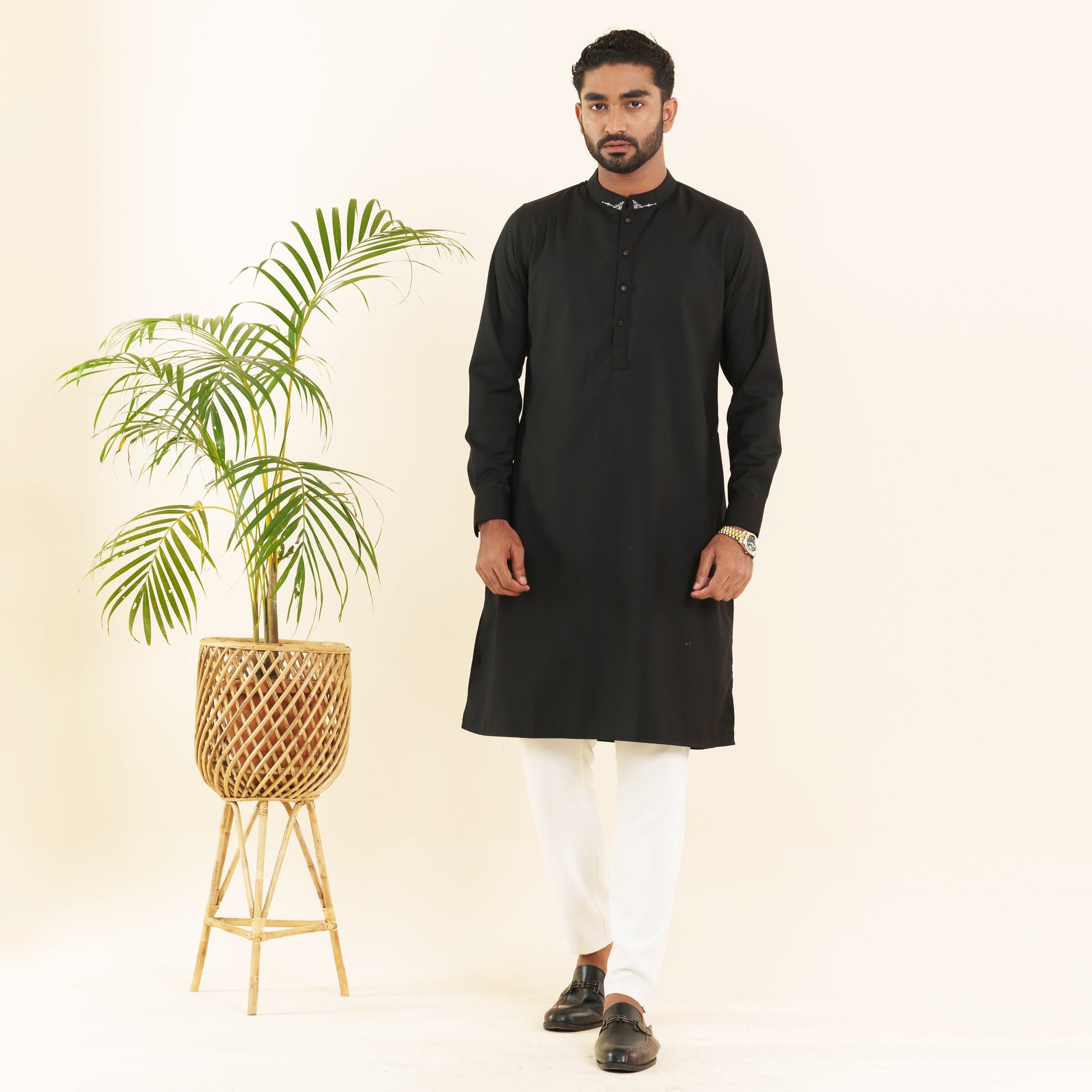 Look Your Best In The Mens Premium Panjabi. This Formal Safari Suit Features A Luxurious Blend Of Cotton And Linen Fabric For Superior Comfort And Quality. Designed With Decorative Embroidery And A Jet Black Finish, It'S The Perfect Addition To Your Wardrobe.