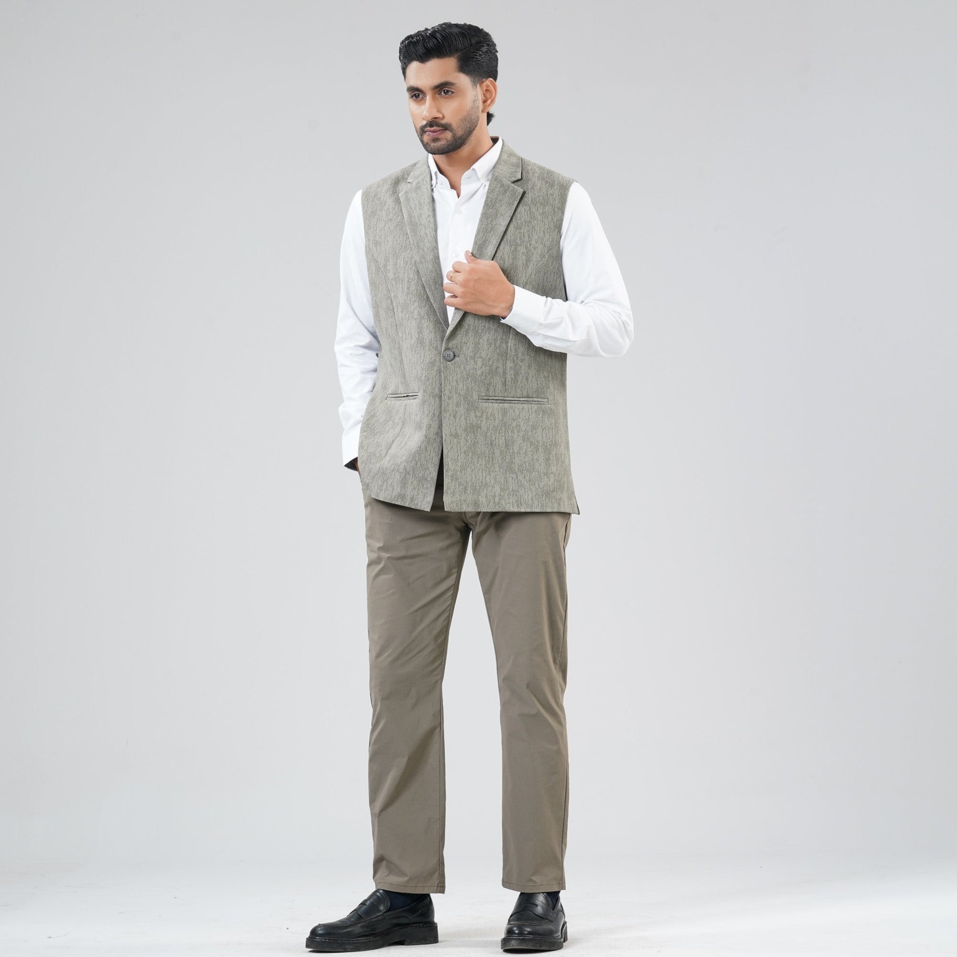 This men’s army print vest showcases a modern fusion blazer looks with a newly introduced cut for a stylish update. Crafted from premium blended fabric, it provides both comfort and structure. Perfect for layering over blazers and shirts, this vest adds a refined and sophisticated touch to any festive or formal ensemble.