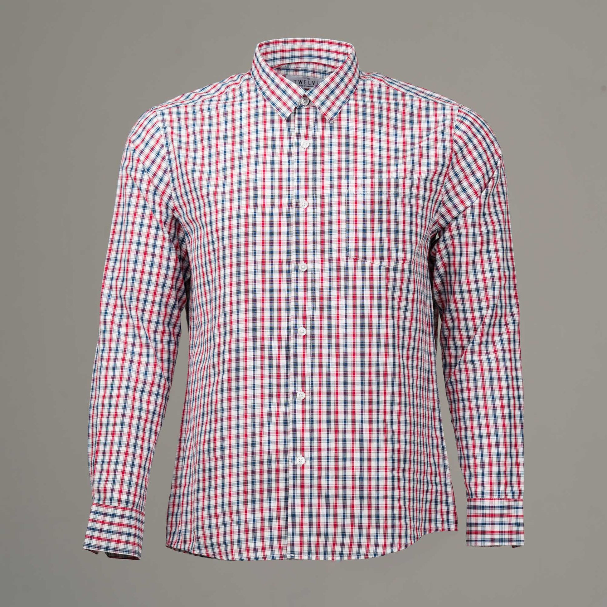 Smart formal shirt in a classic red check design, tailored from a soft blended fabric. Comfortable yet polished, making it ideal for office wear or formal occasions. Designed to offer a sharp look with lasting wearability.