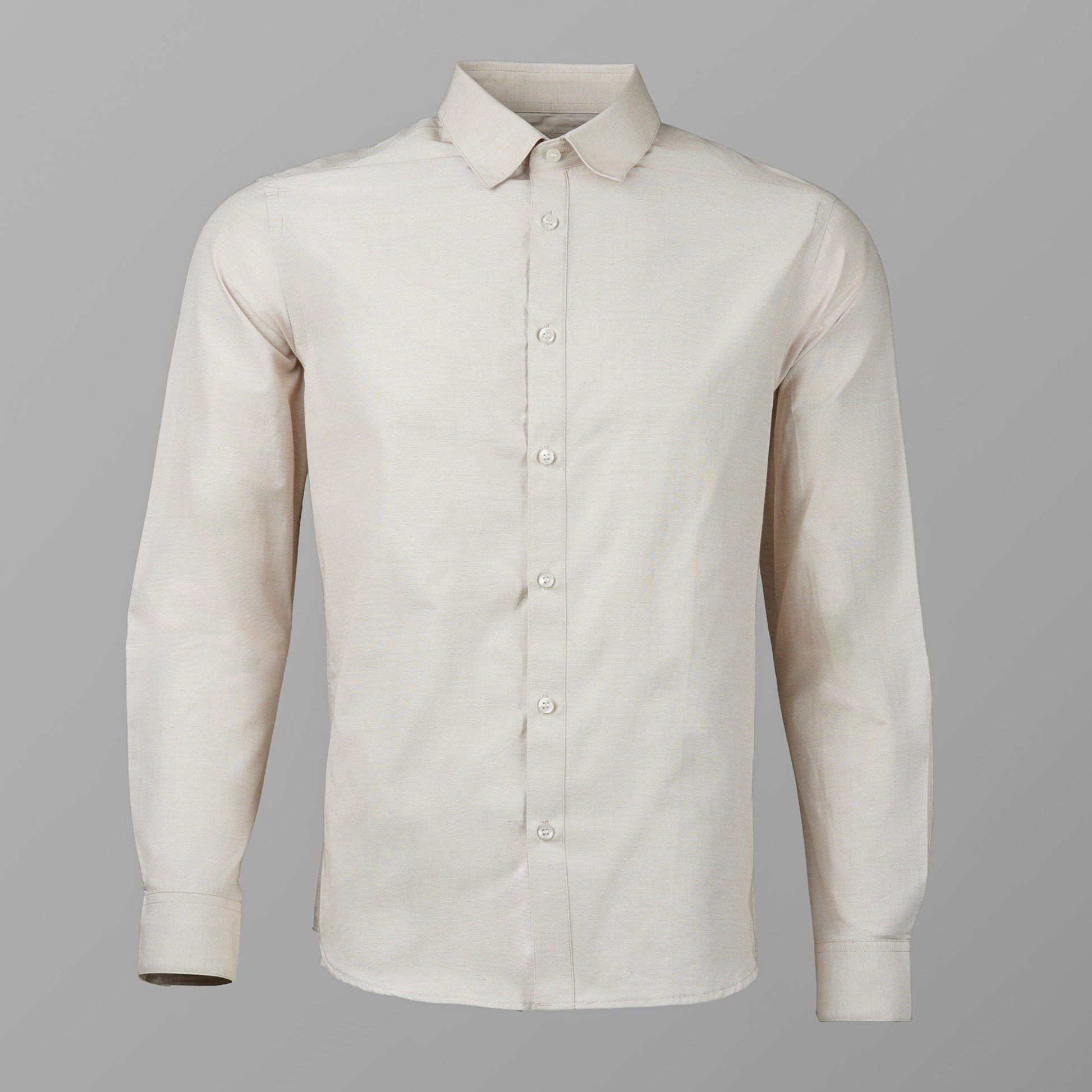 This mens light brown shirt offers understated elegance with its cotton blended fabric. Designed, it combines comfort and sophistication, making it ideal for office wear or formal occasions. A versatile addition to any wardrobe.