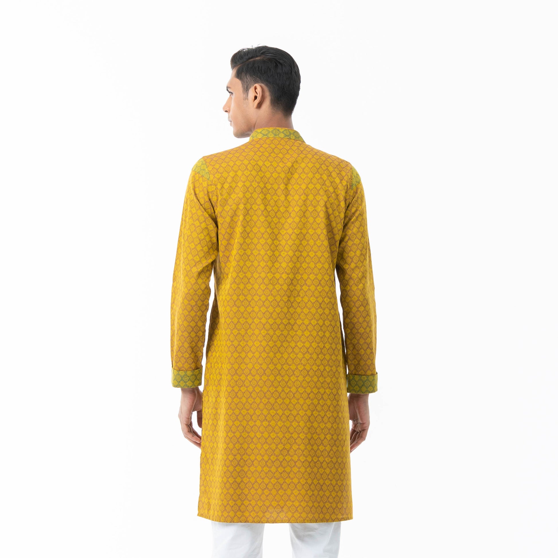 Mens Yellow-Maroon Printed Panjabi
