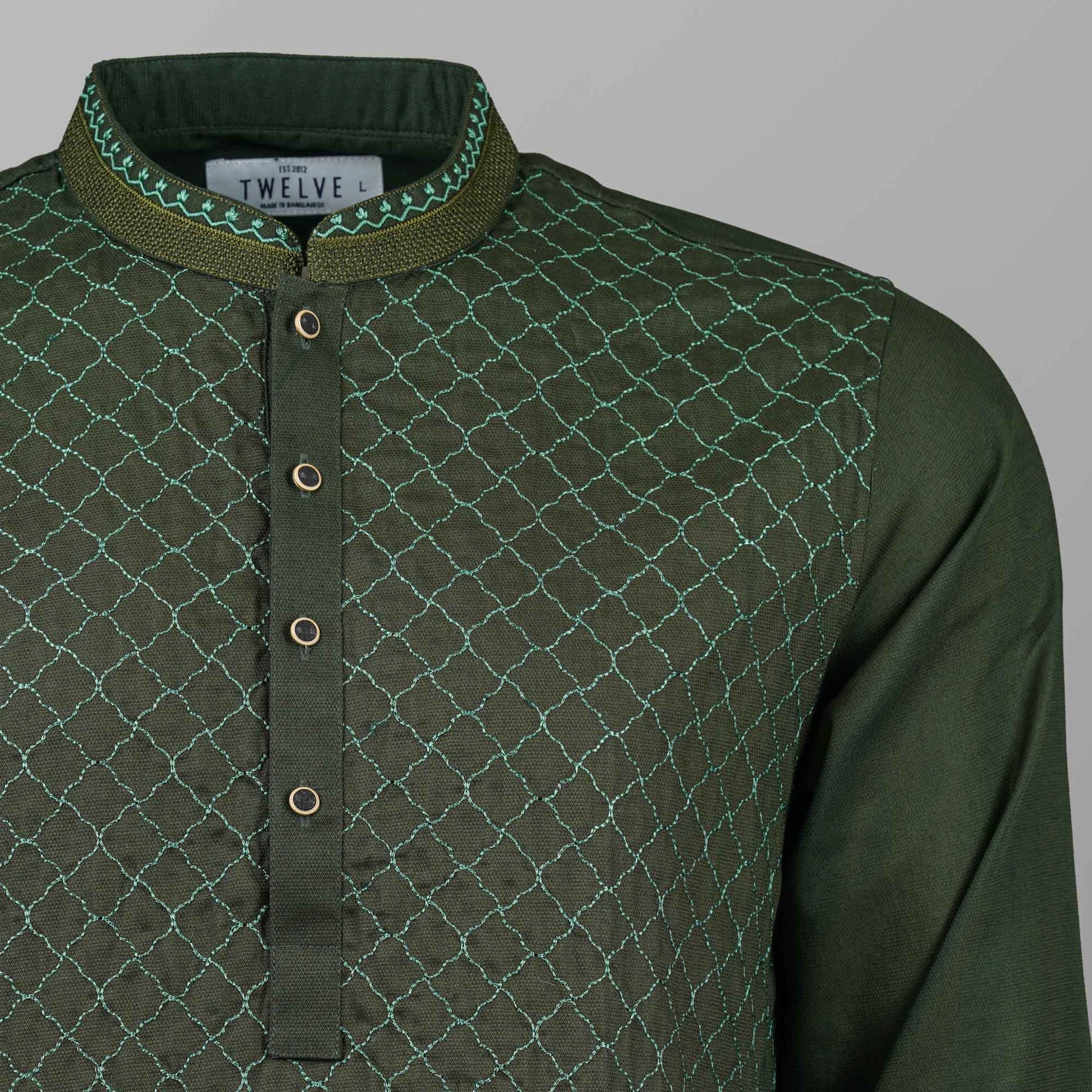Mens Green Embroidery Panjabi
