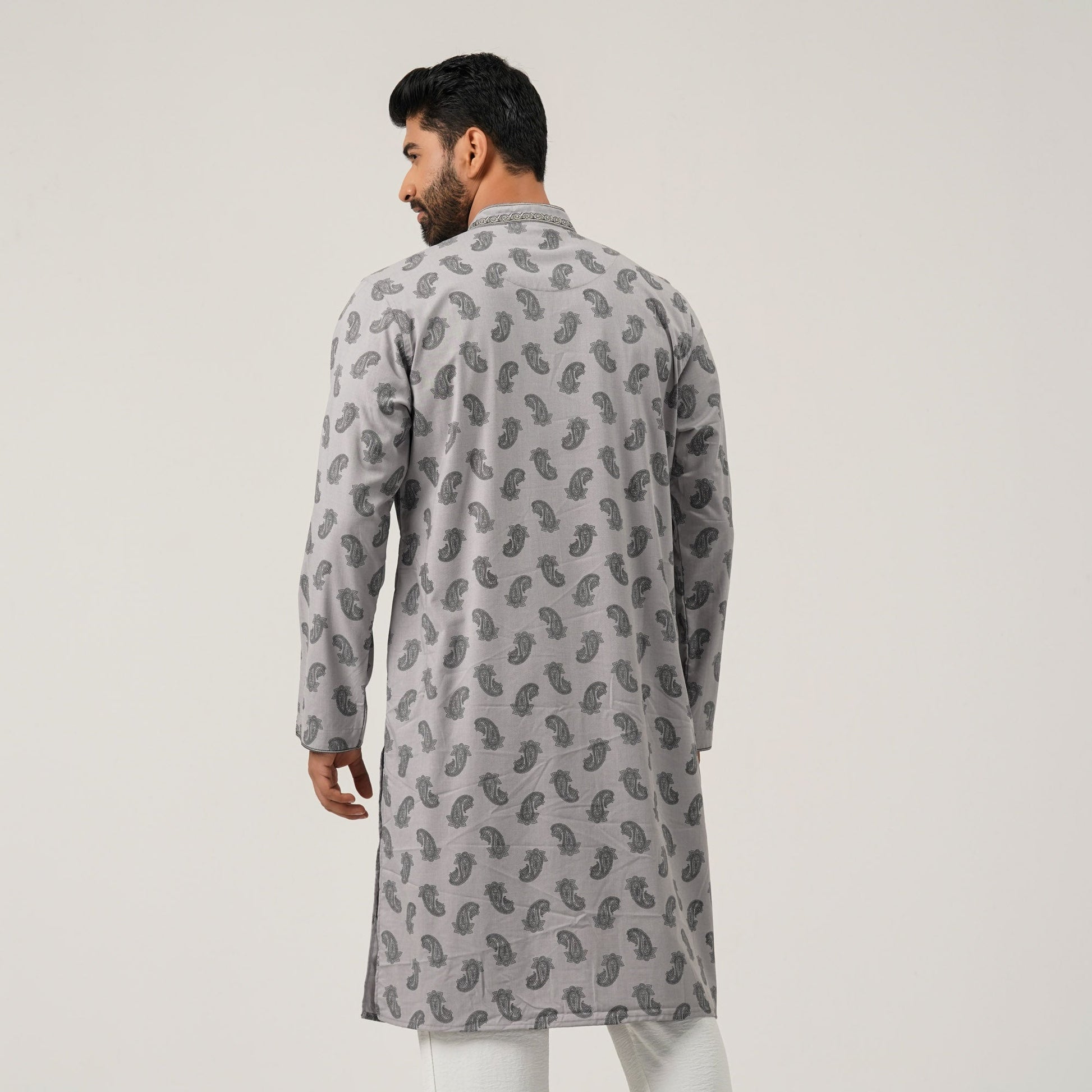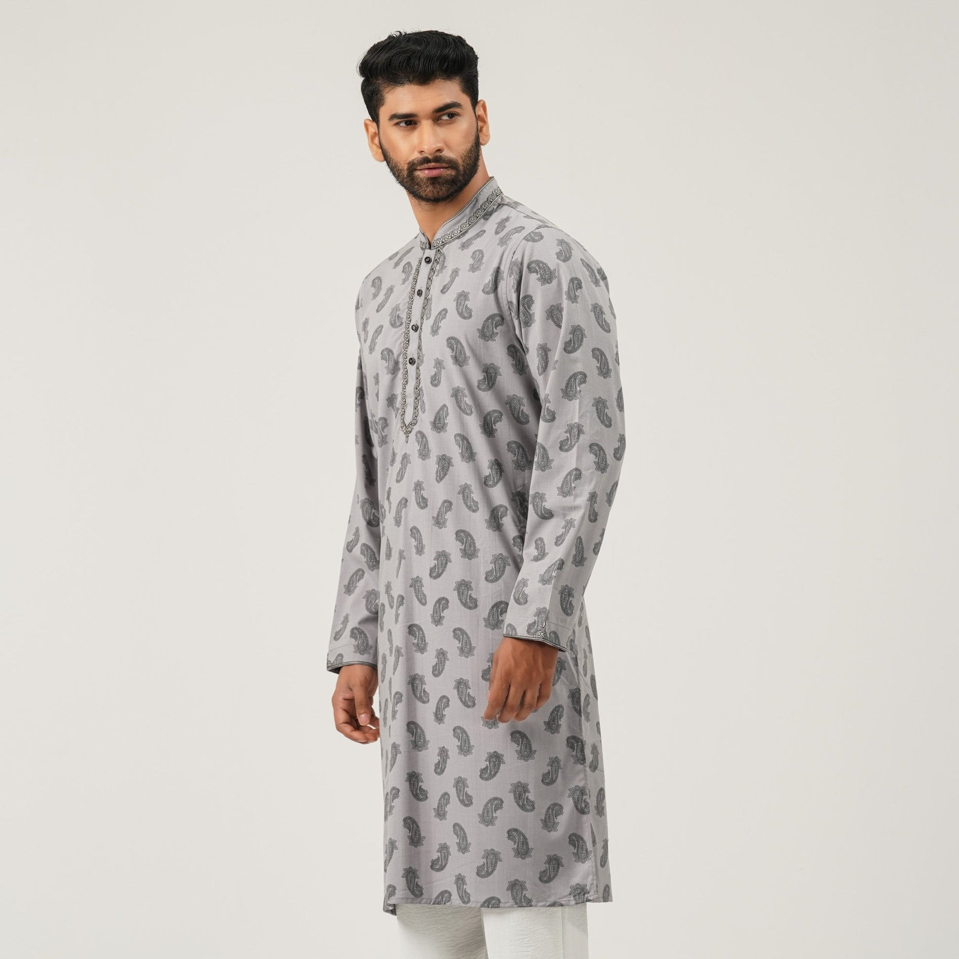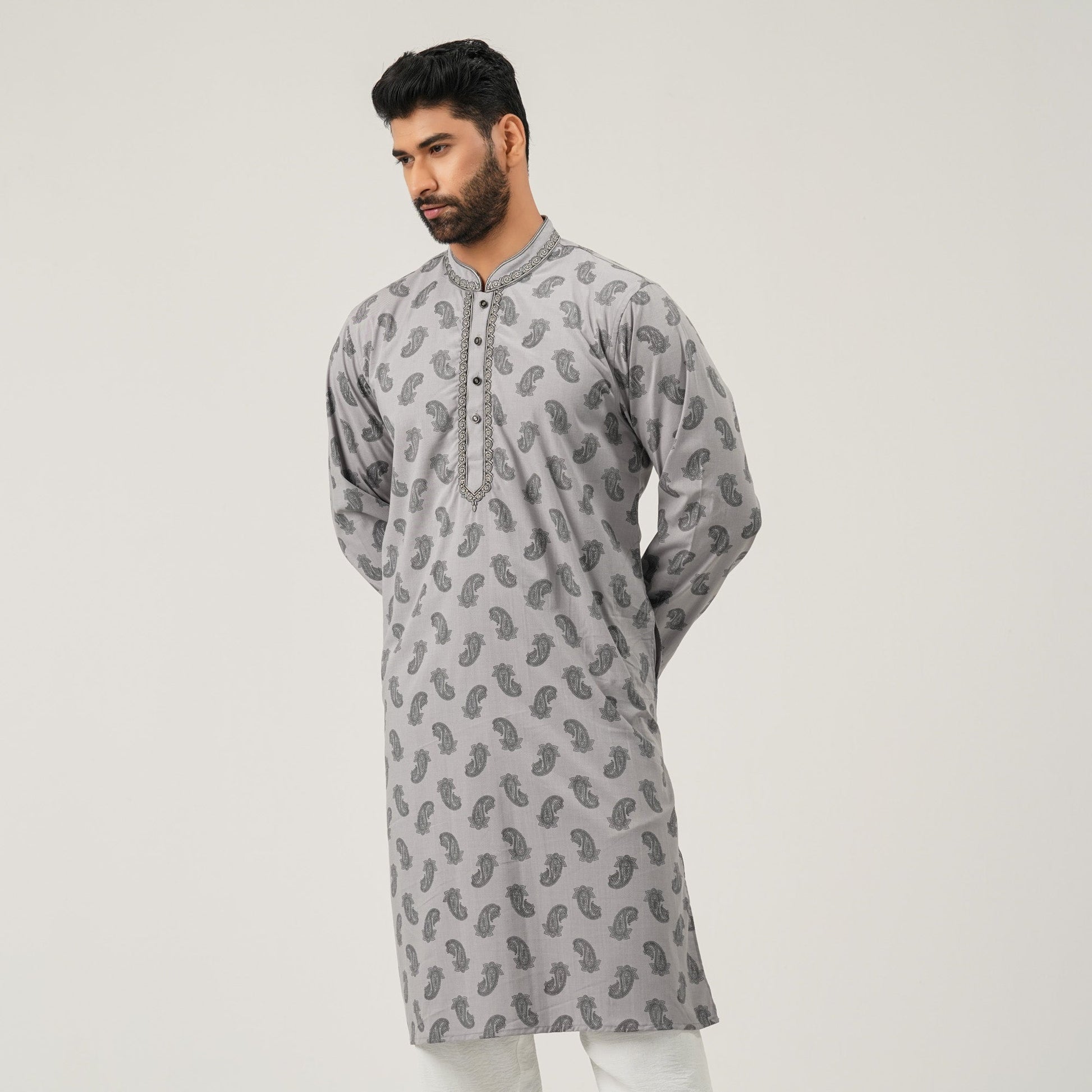 This men’s premium Panjabi is crafted from high-quality bamboo silk, offering a smooth and luxurious feel. The elegant embroidery work enhances its rich appearance, making it perfect for festive occasions or formal wear. Designed for comfort and sophistication, it’s an ideal choice for those who appreciate refined style.