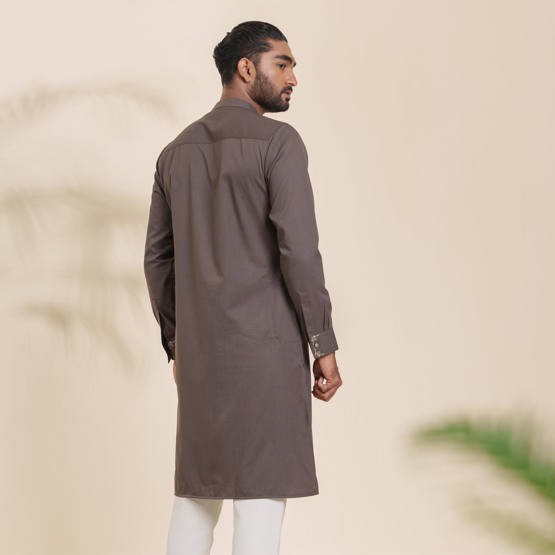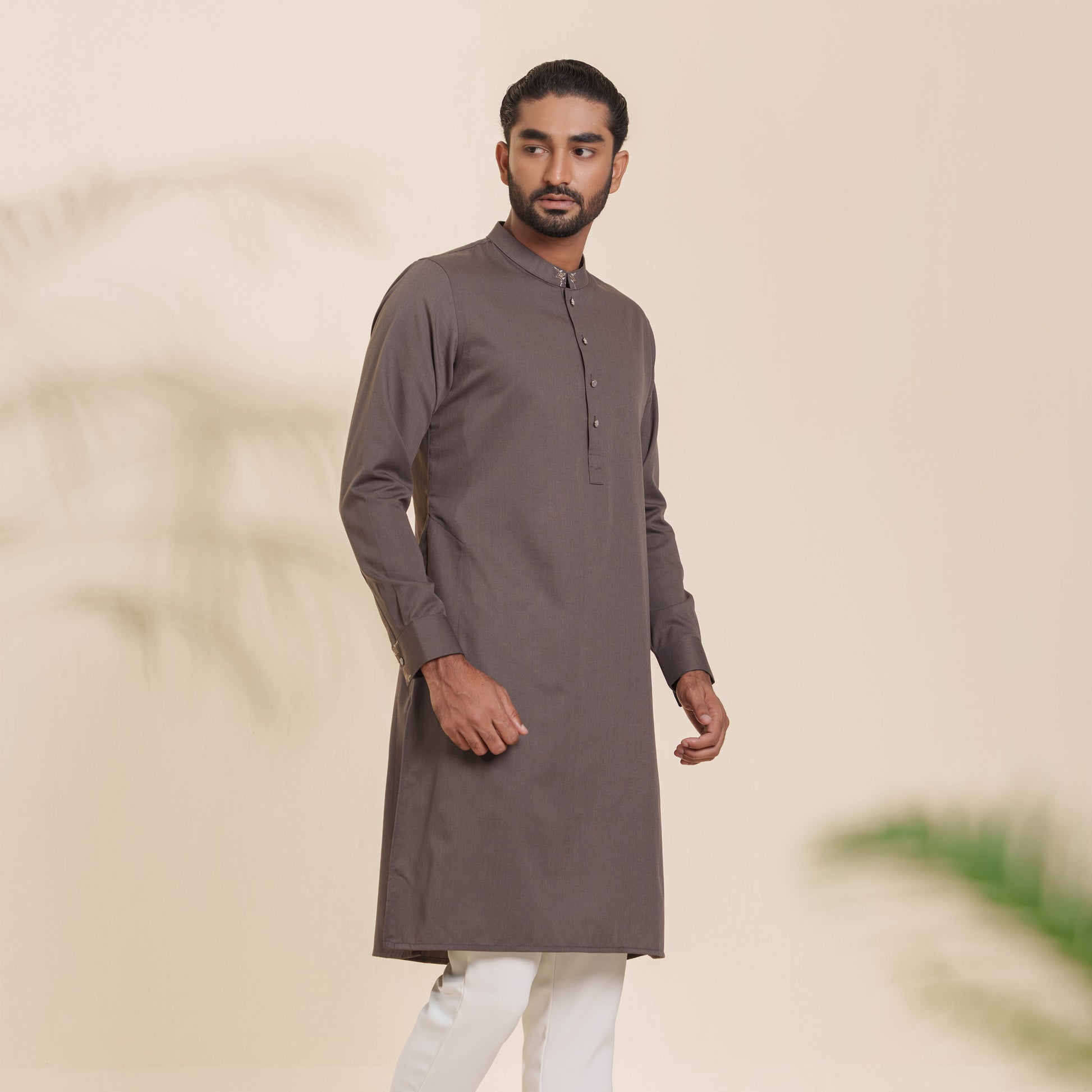This Stylish Men's Premium Panjabi Is Crafted from A Blend of Cotton and Linen for A Comfortable and Breathable Feel. Its Attractive Decorative Embroidery Adds a Luxurious Look, While the Ash Grey Color Provides an Elegant Finish. A Perfect Choice for Formal Occasions.