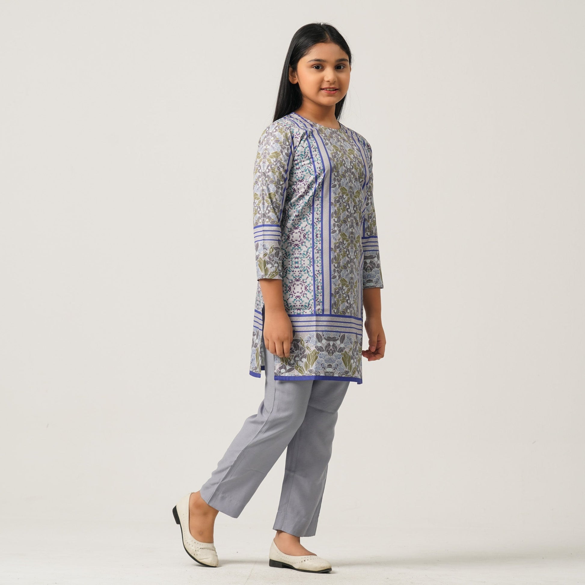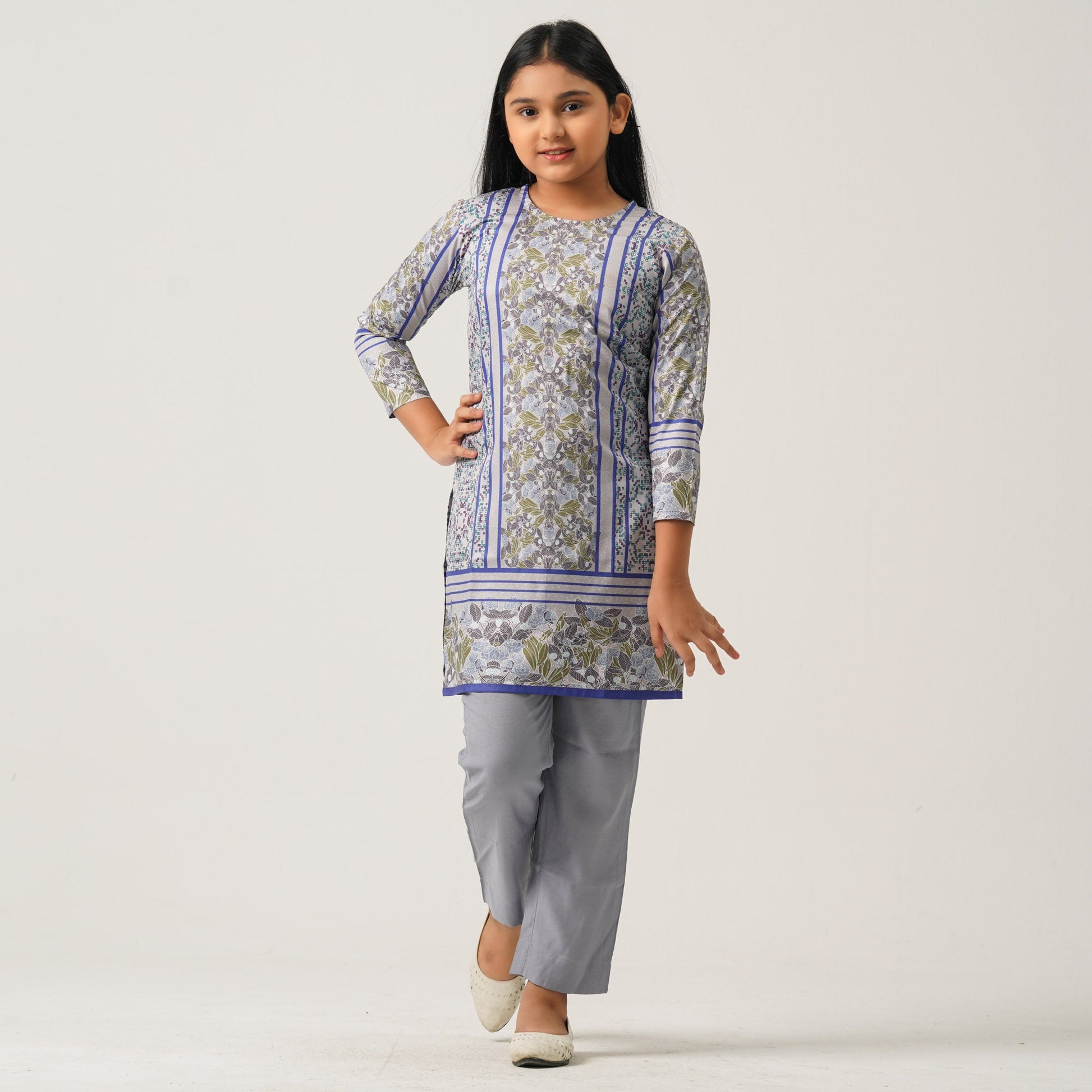 This elegant two piece set for girls is made from high-quality blended silk, featuring vibrant digital prints that add charm and flair. Soft, lightweight, and comfortable, it’s ideal for festive events and special occasions.