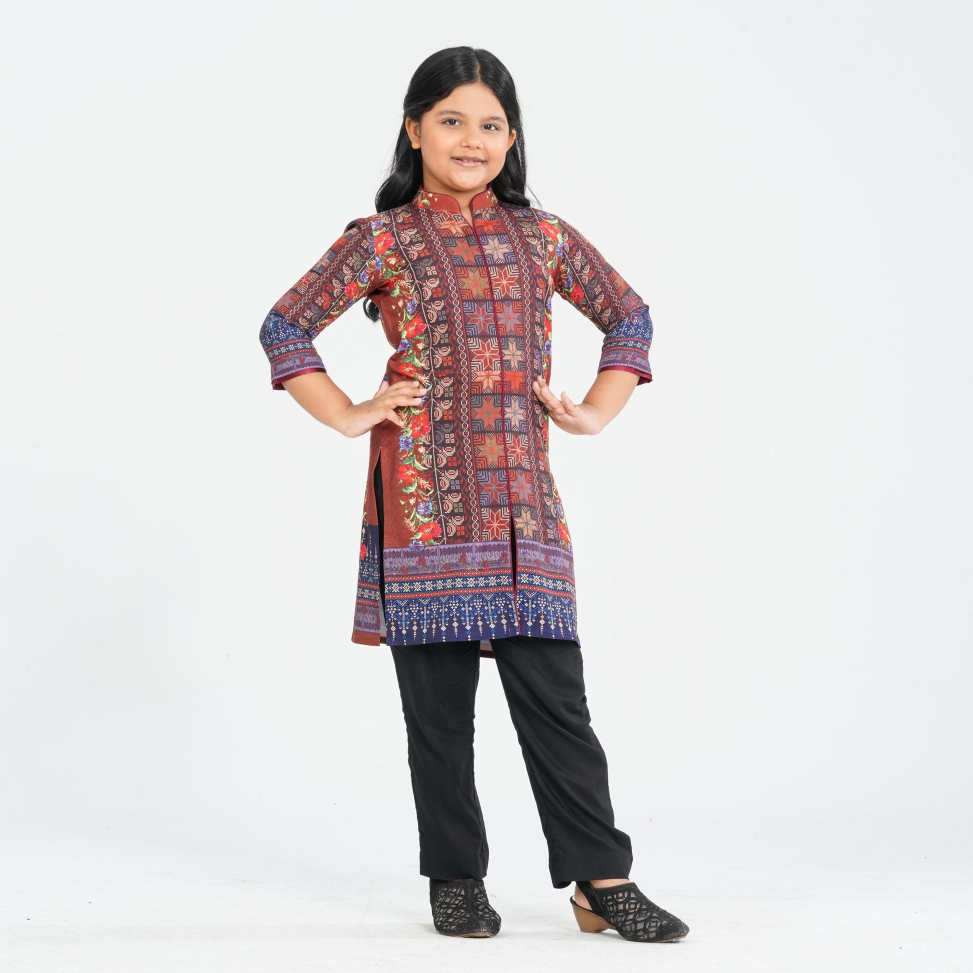 Elegant two piece ethnic set crafted from soft blended silk, featuring a straight-cut kameez paired with matching straight pants. Adorned with vibrant digital prints and delicate glasswork for a touch of festive sparkle. Comfortable, stylish, and perfect for celebrations or traditional occasions.