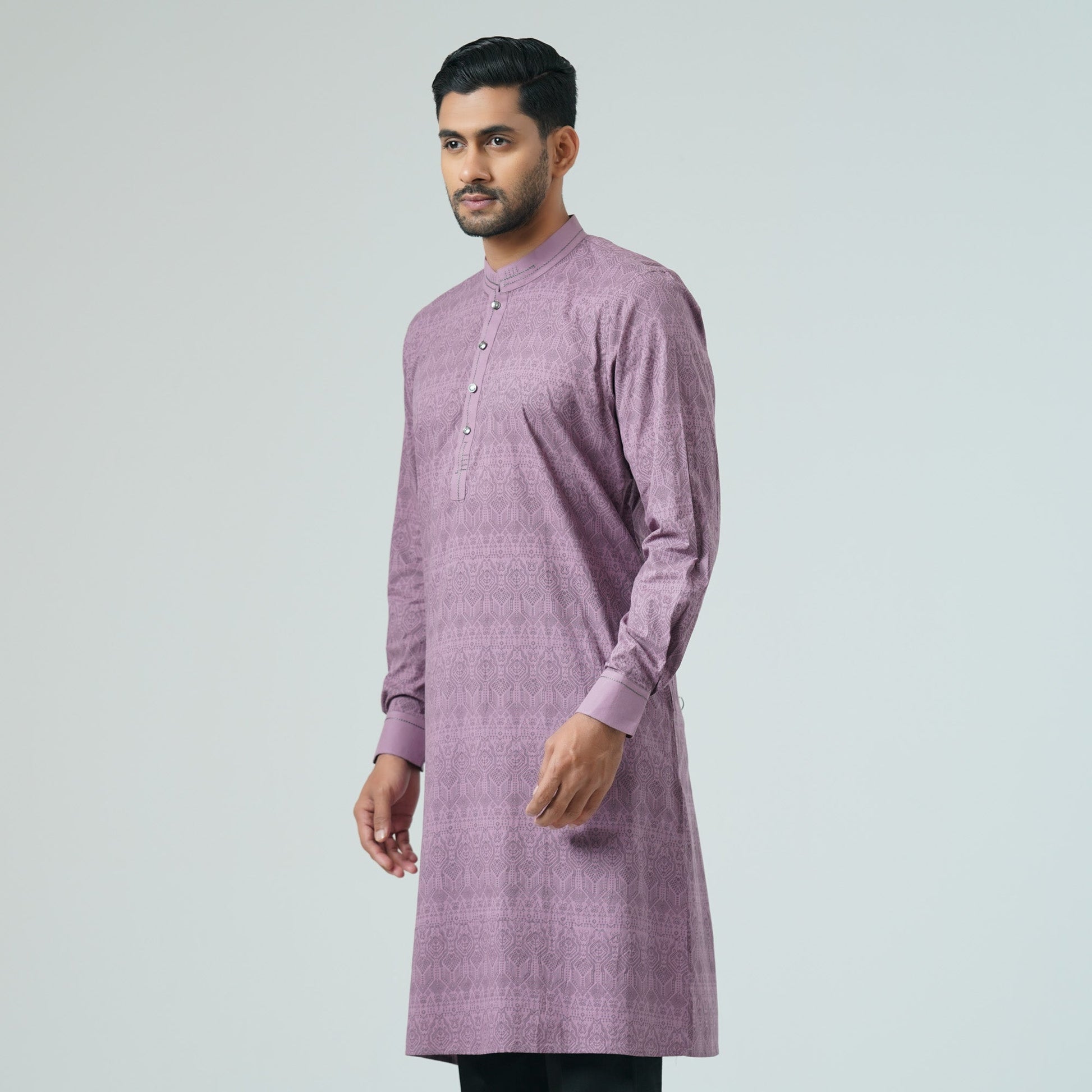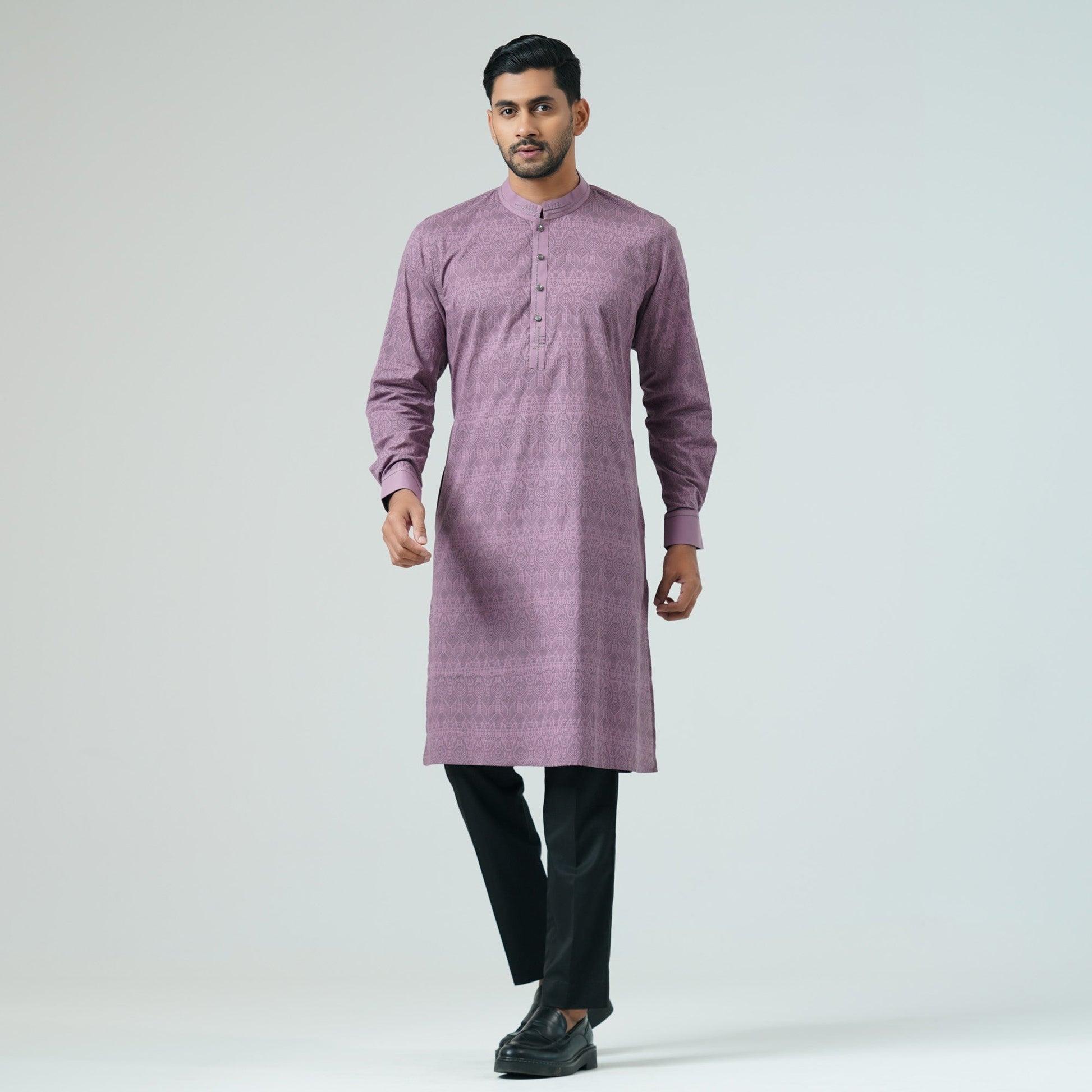 This men’s mauve basic Panjabi features metal shank buttons and is crafted from poly cotton, providing a comfortable and regular fit. Its timeless design makes it a versatile option, suitable for both traditional and casual occasions. The clean white color adds a classic touch to any wardrobe.