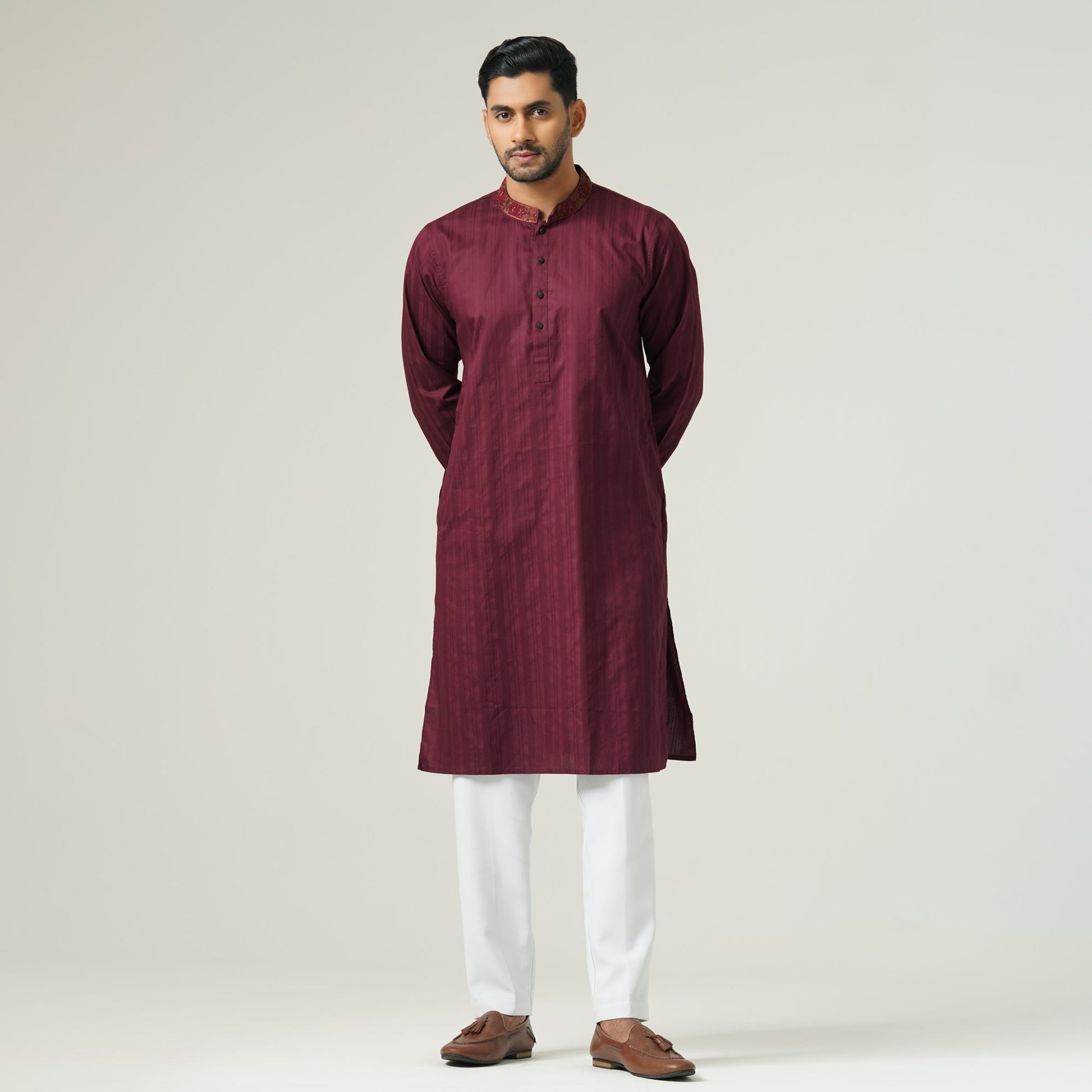 Panjabi, featuring intricate computer embroidery on cotton blended fabric. Designed in a slim fit for a modern and sophisticated look.