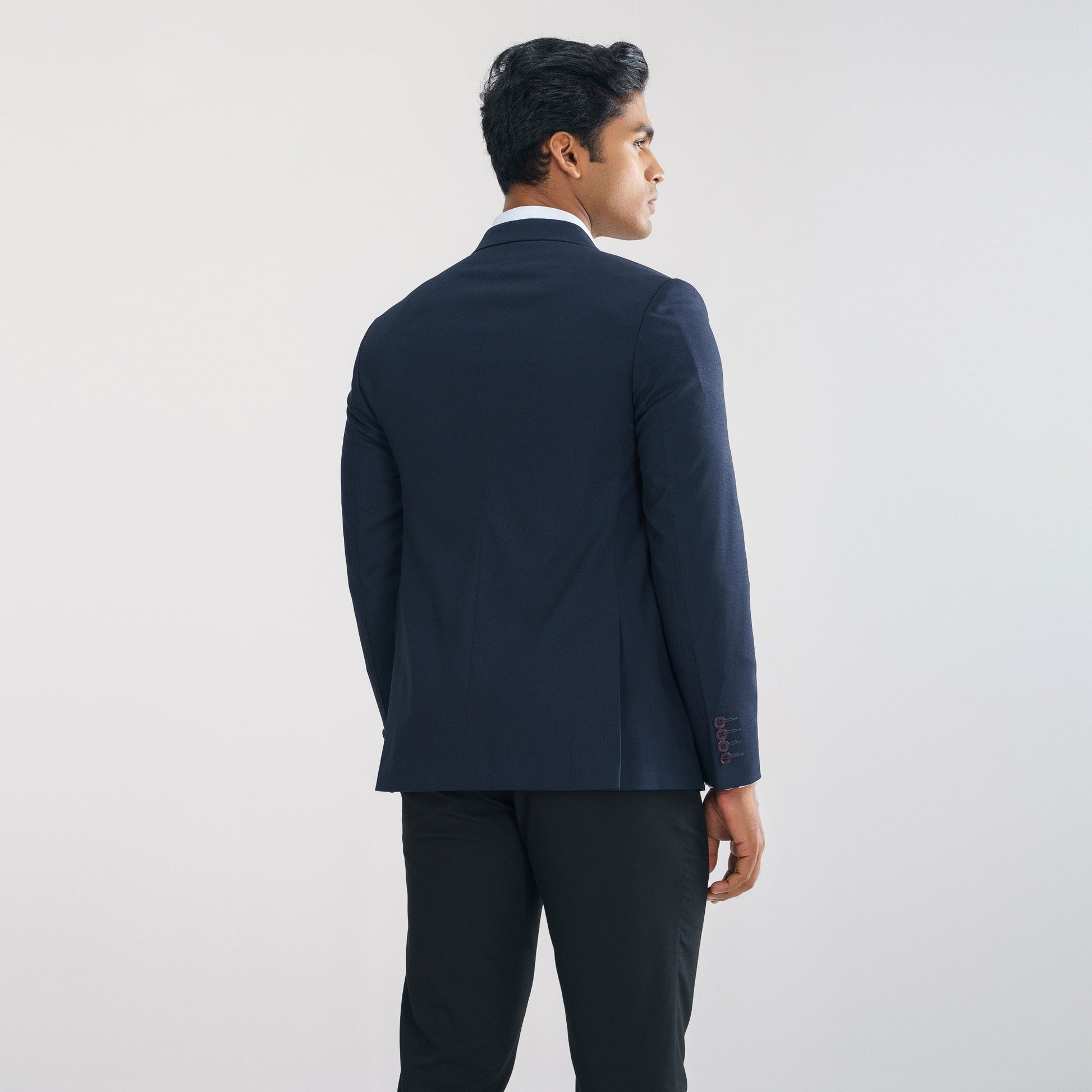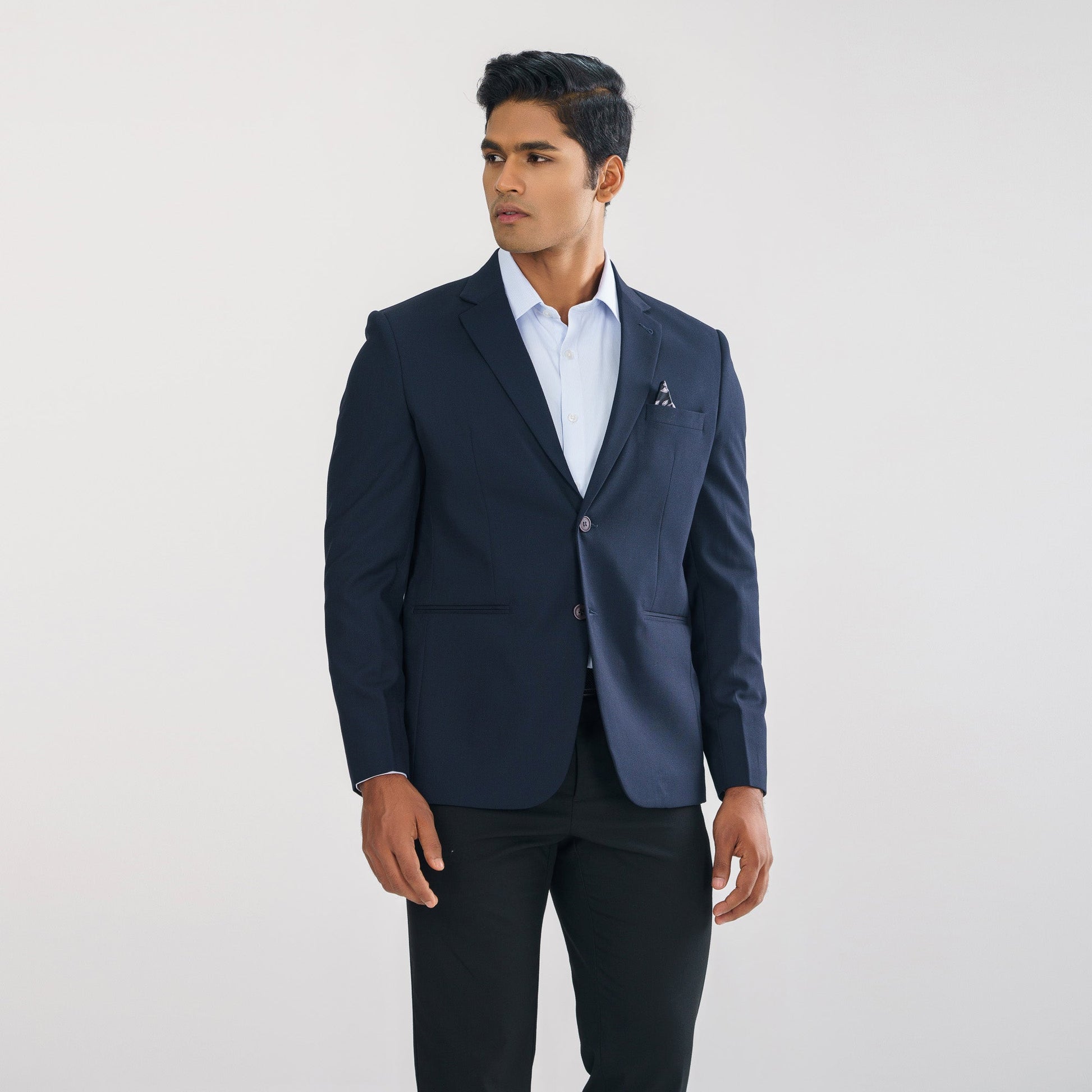 This deep navy blazer offers a smart, relaxed alternative to formal jackets. Crafted from a comfortable cotton blend, it’s unlined and unpadded, with smooth, edge-free lapels, two front buttons, and a double back vent for ease of movement. Designed for lightweight layering, it’s perfect for a polished yet casual look over multiple outfits.