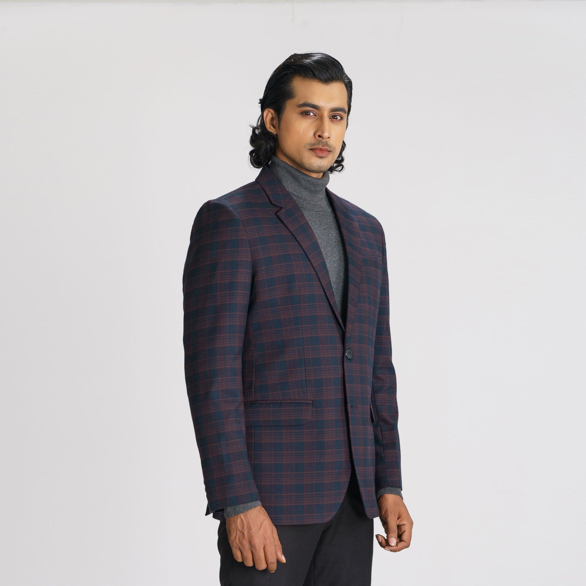 Mens Navy Check Blazer