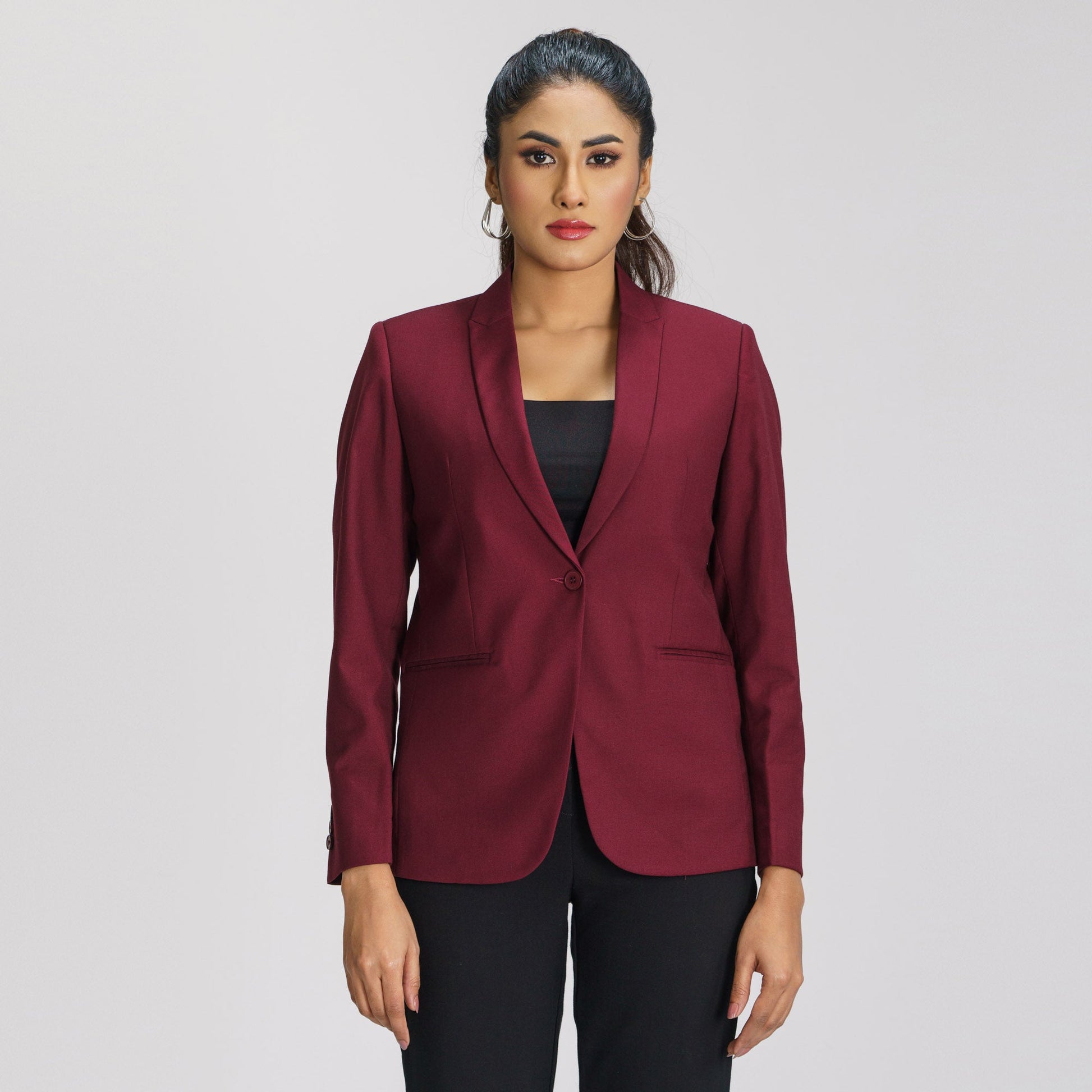 This maroon slim fit women’s blazer is designed for effortless, casual elegance. Crafted from a cotton blend, it features a single button and one cut, with an unlined and unpadded structure for a lightweight, comfortable feel. Ideal for layering, it’s a versatile addition to any casual or semi-formal wardrobe.