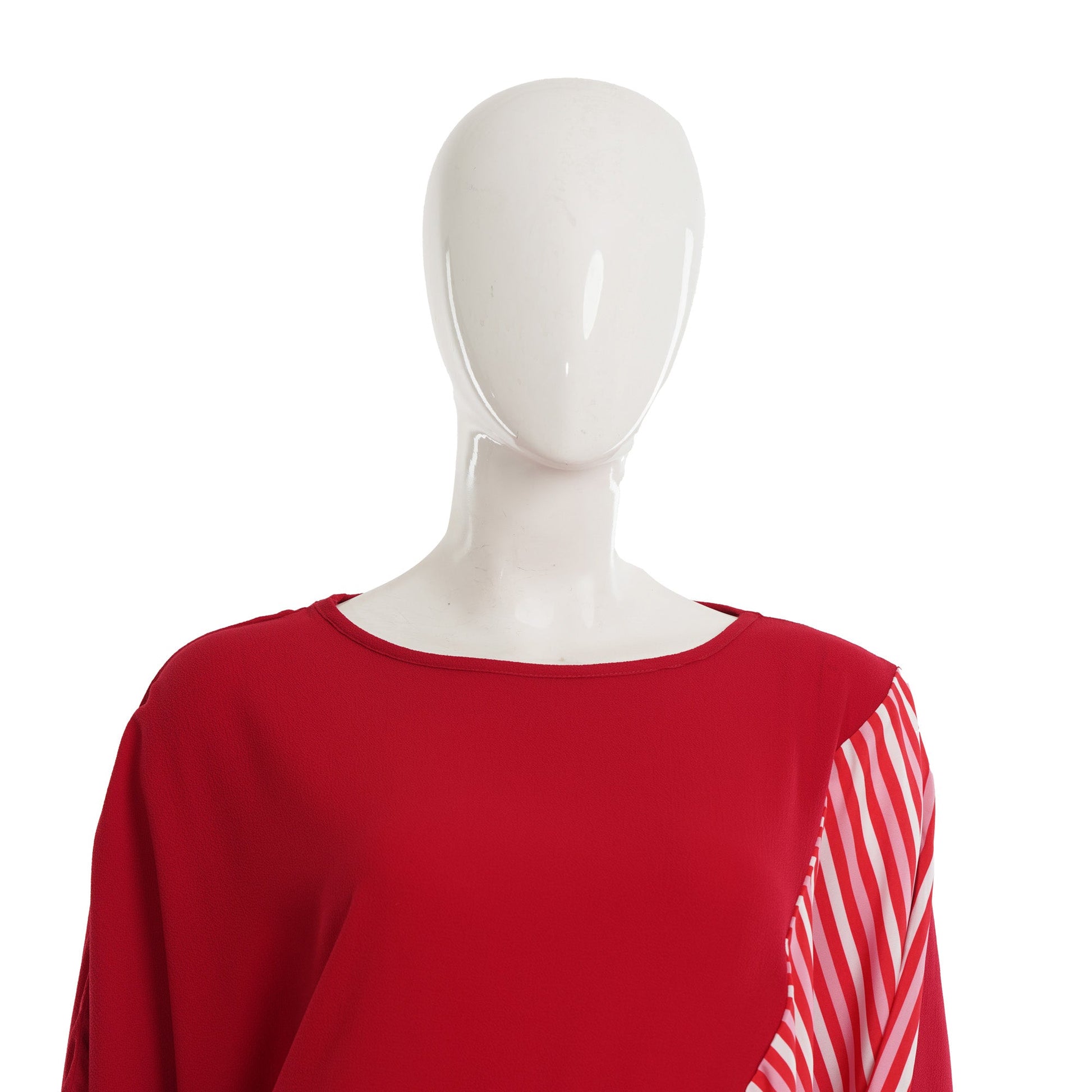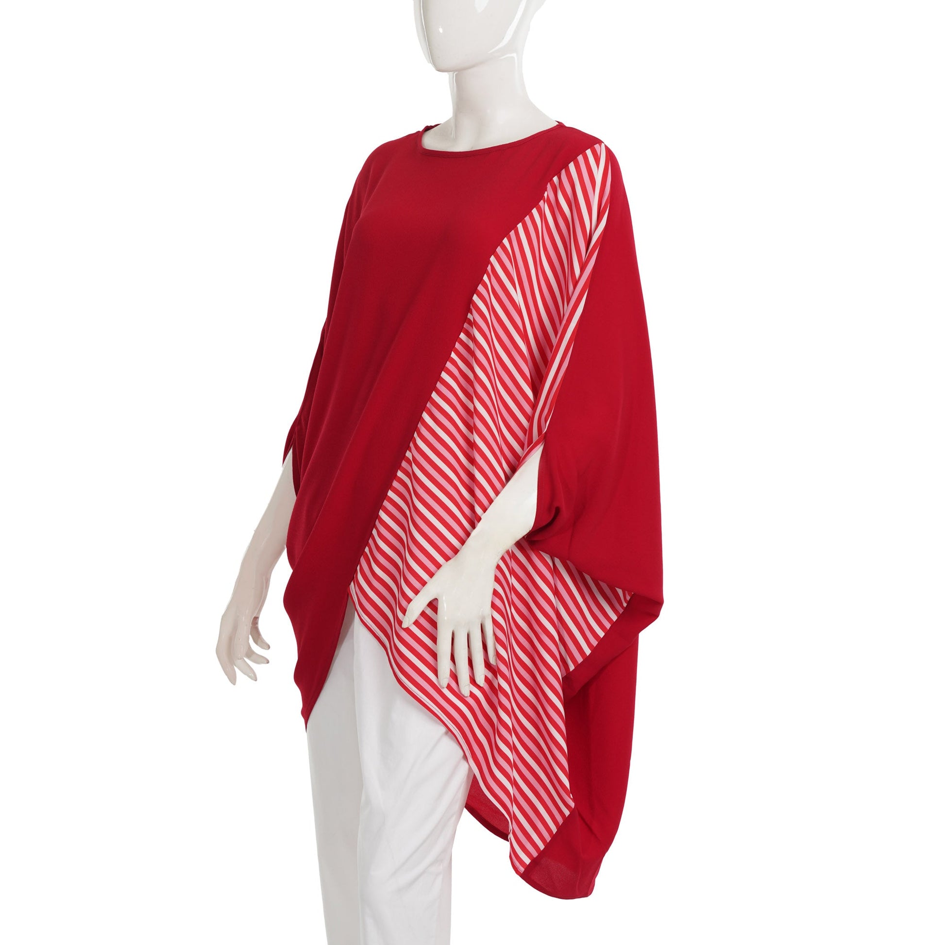 Elevate your wardrobe with our Women's Red Boxy Top, featuring a unique striped print that adds a contemporary twist to a classic silhouette. Crafted from soft georgette, this top offers a comfortable and breathable fit, perfect for all-day wear. Its relaxed style and solid color make it versatile enough to pair with jeans, trousers, or skirts for both casual and semi-formal occasions.Â