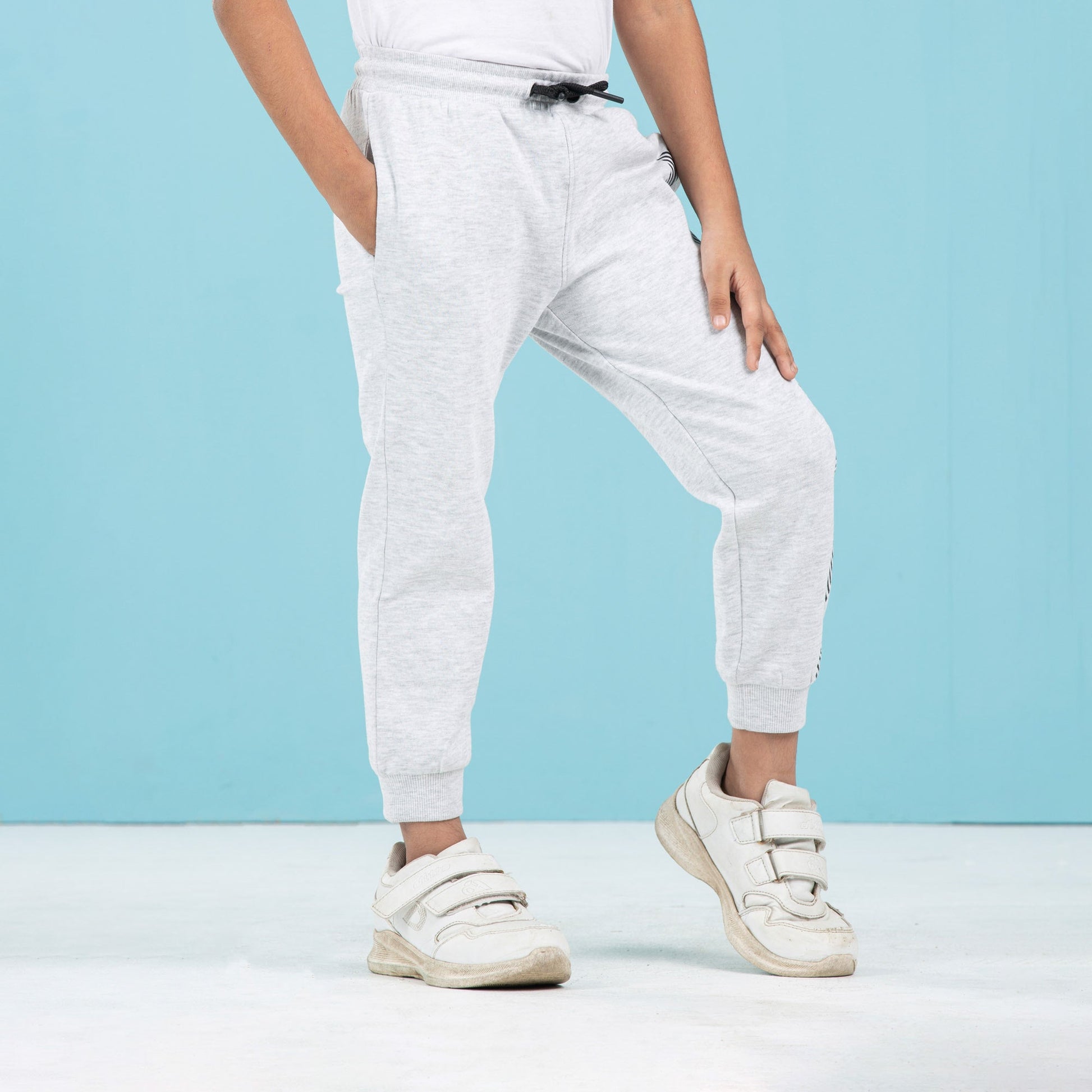 These grey melange joggers feature a comfortable and secure fit every time, making them ideal for active kids. Crafted from a lightweight and breathable material, they provide plenty of mobility and ventilation. The drawstring waist and elasticated cuff ensures a perfect fit for any boy.