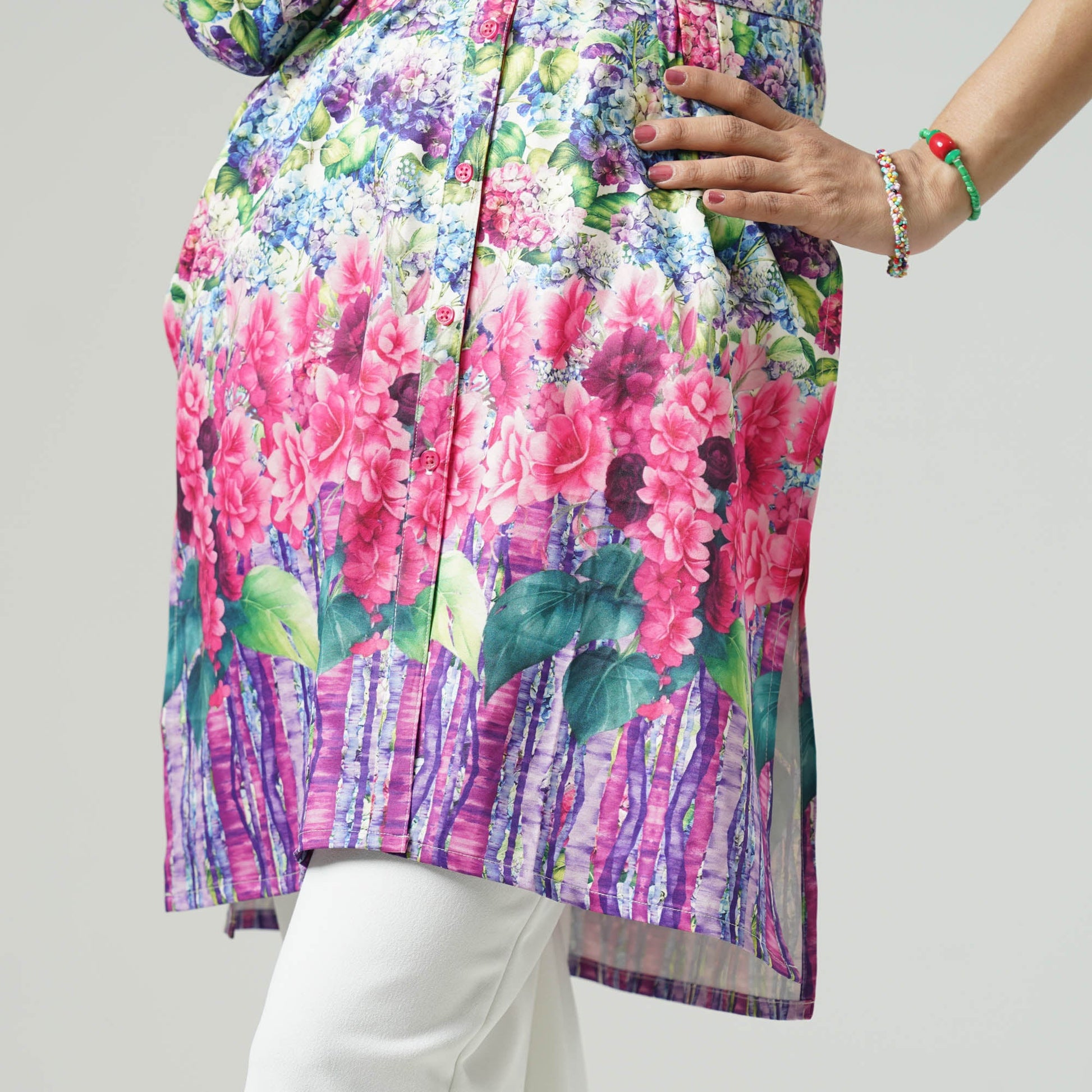 This stylish blue kurti features a digital printed shirt pattern, enhanced with a matching belt for a chic look. Made from comfortable blended fabric, it offers a regular fit for effortless wear. Perfect for both casual and festive occasions.