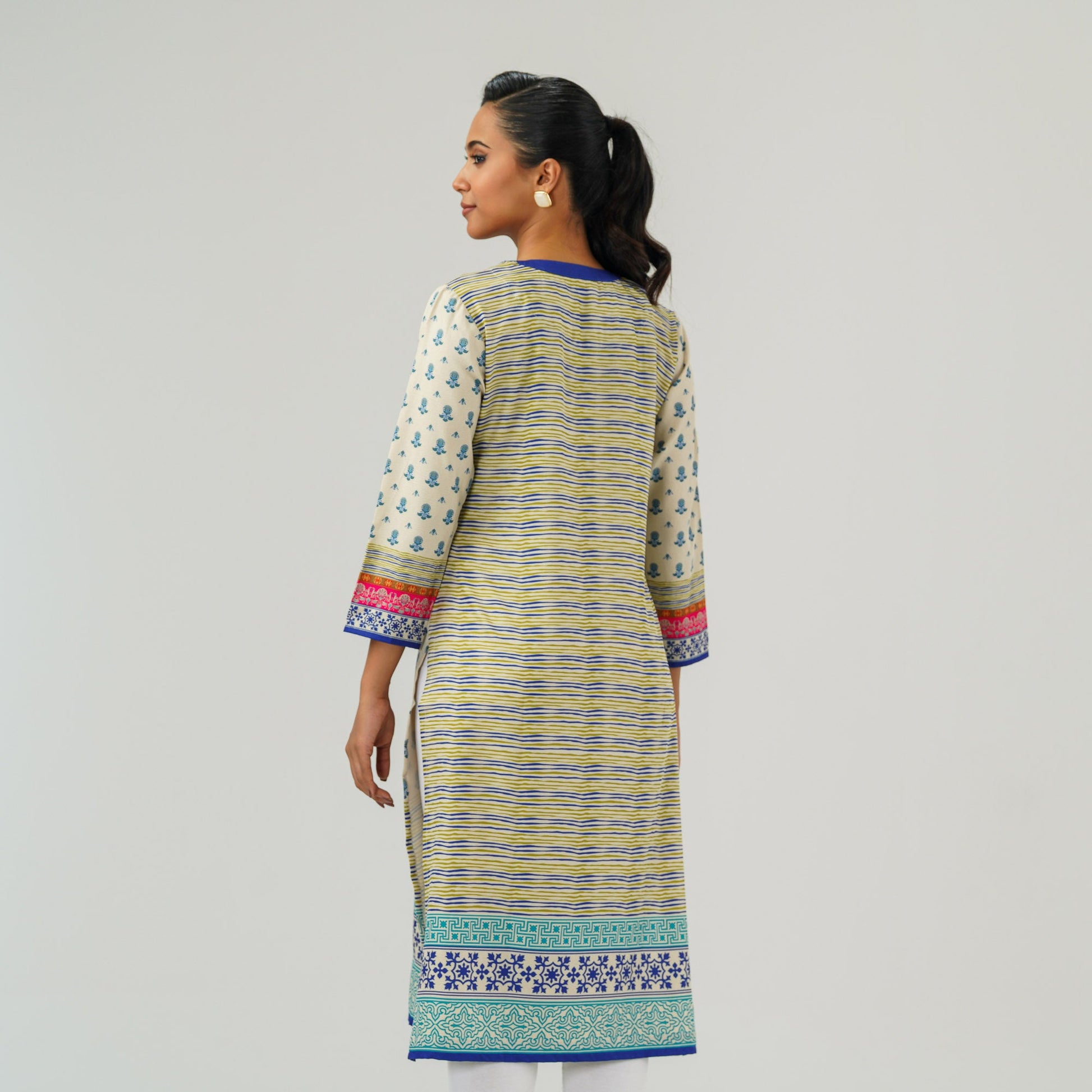 This stylish high-range kurti features a vibrant digital print with eye-catching contrast detailing, adding a touch of elegance. Crafted from a comfortable blended fabric, it offers a perfect balance of style and ease. Ideal for both casual and festive occasions, this Kurti enhances your ethnic wardrobe effortlessly.