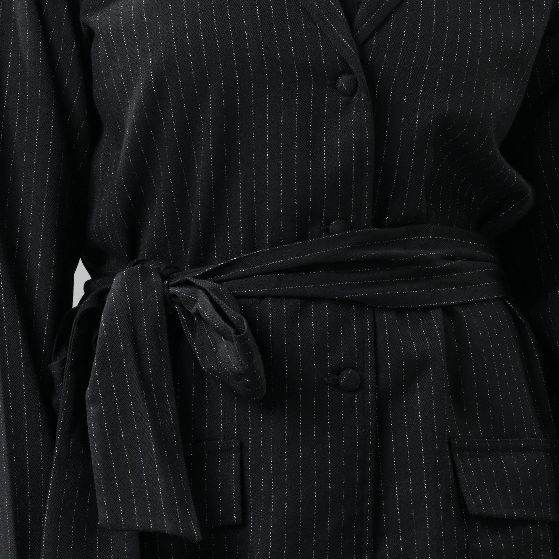 This elegant black blazer features a notched lapel collar, button closure, and long sleeves for a classic look. Designed with a waist belt for a tailored fit and a straight hem for added sophistication, it offers a sleek style without lining for lightweight comfort. Perfect for formal or semi-formal occasions.