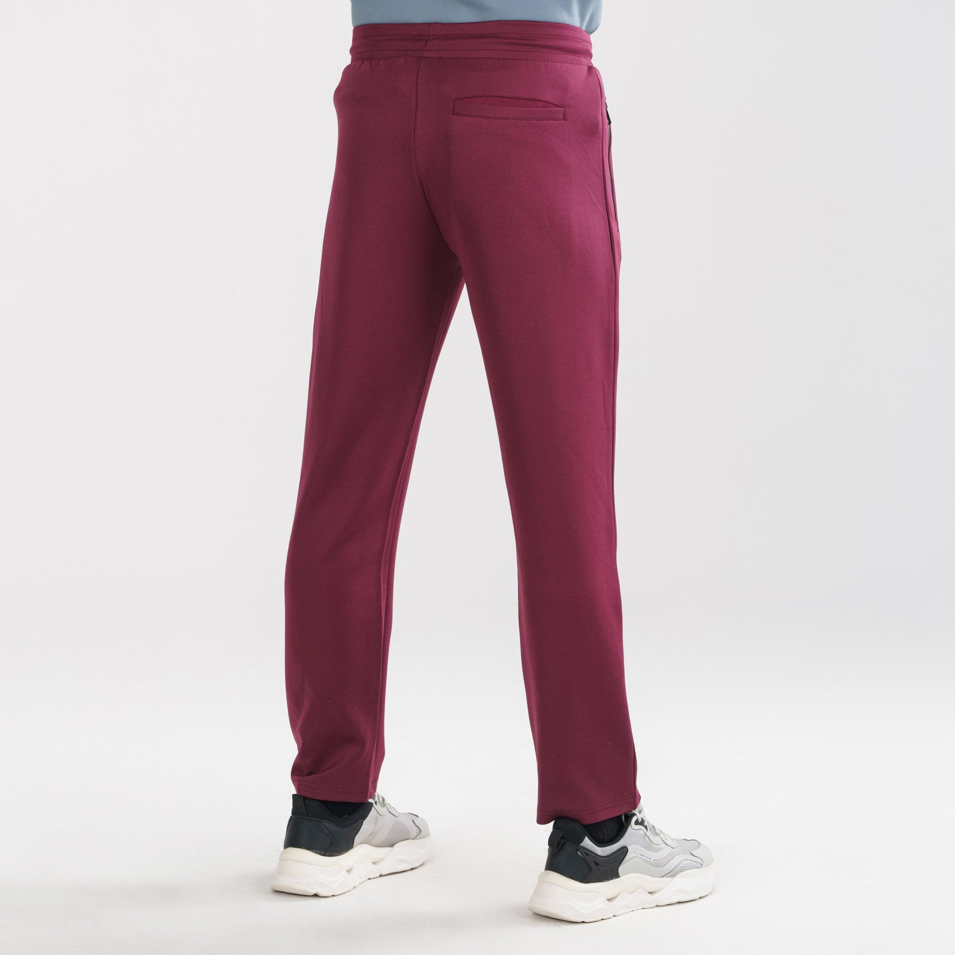 Upgrade your casual style with these men's maroon joggers. Crafted from a blend of viscose, polyester, and spandex, they offer comfort with a modern fit. Featuring a contrast drawcord and zipper detailing, these joggers combine functionality with a trendy look. Ideal for everyday wear or relaxed outings.