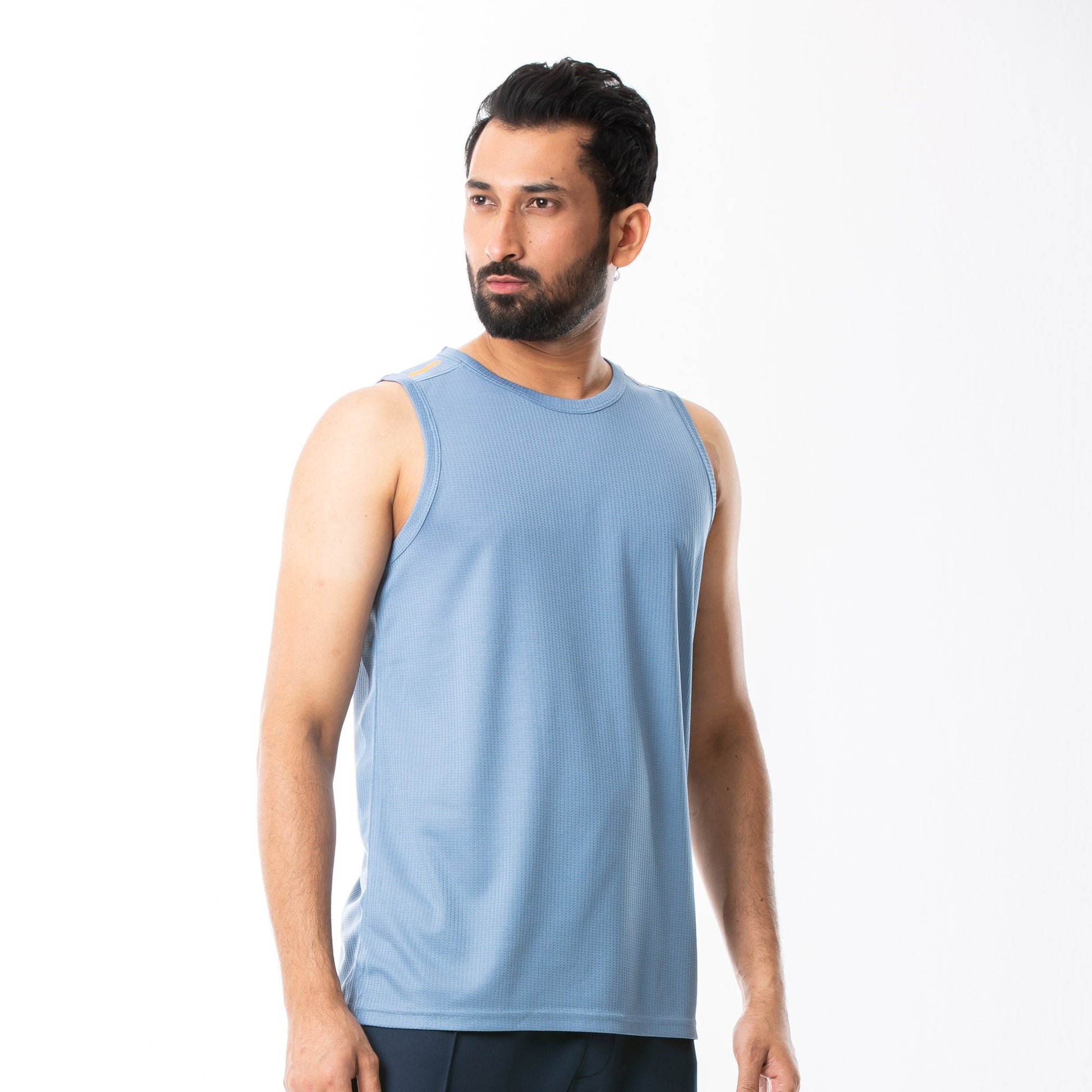 Stay cool and comfortable in our faded sky activewear tank top. Made with 100% polyester mesh, this tank top features a regular fit for easy movement during your workout. Choose this top for ultimate comfort and style while staying active.