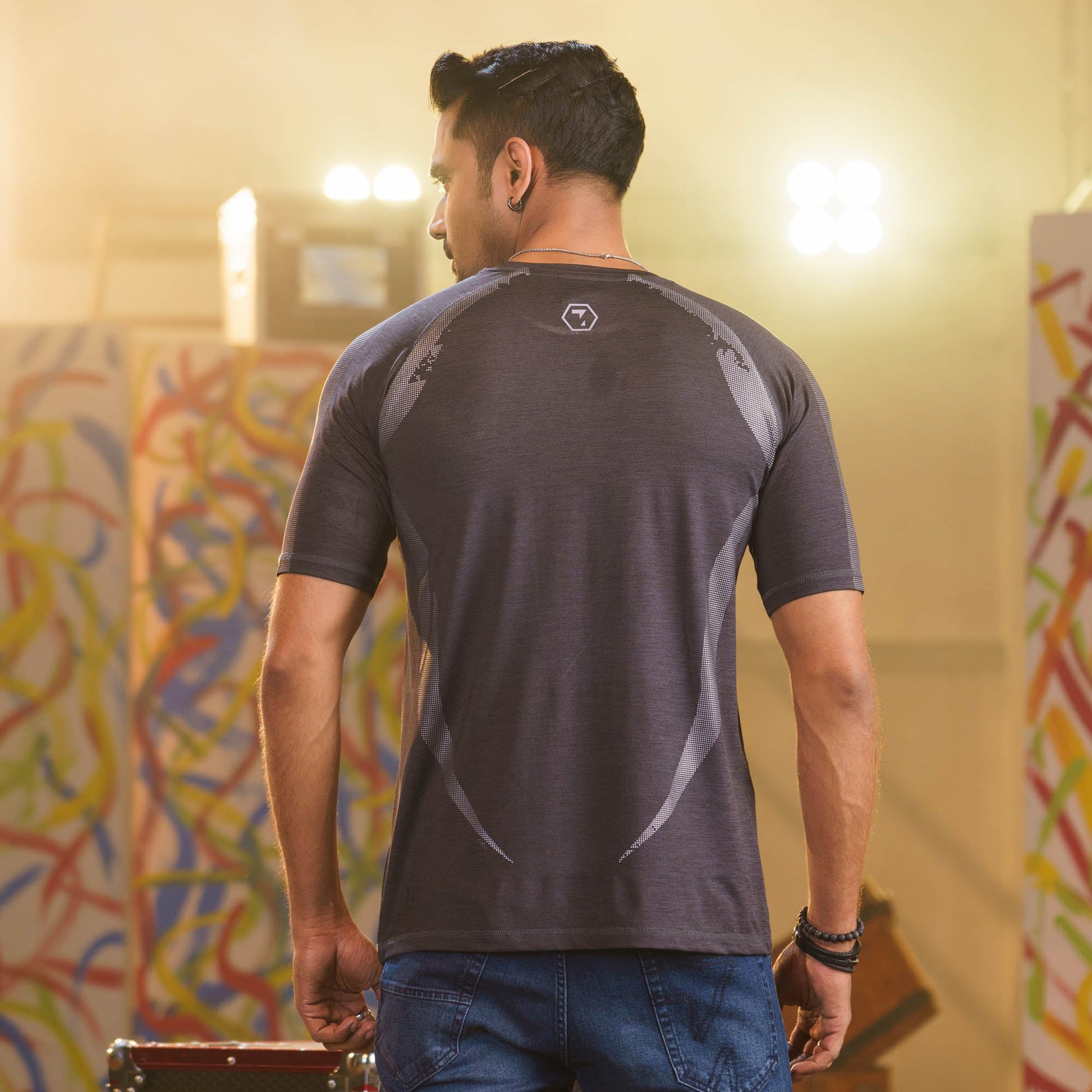 Achieve a sleek, athletic look with this black activewear t-shirt, showcasing bold contrast prints on the front and back. Made from durable polyester, this slim-fit t-shirt combines style and functionality, perfect for intense workouts or everyday wear. Stay comfortable and stylish wherever you go.