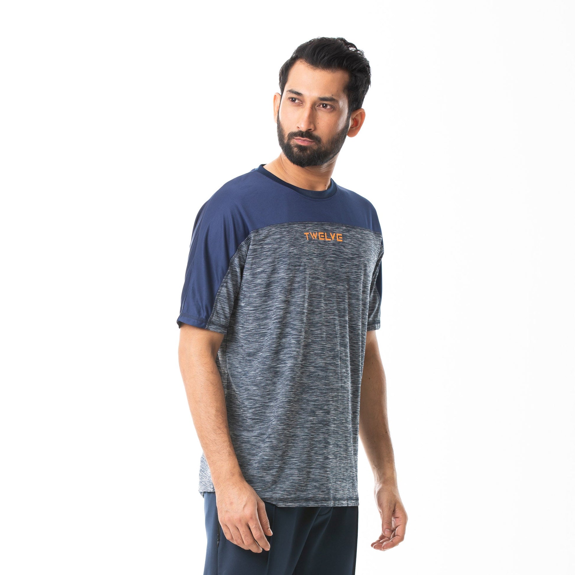 This slim fit T-shirt features paneled printing and a plastisol chest print, delivering a sleek and contemporary style. Crafted from durable polyester, it ensures a comfortable fit with a smooth texture. The dark navy color adds a sophisticated touch, making it ideal for men who appreciate a refined yet bold look in their casual attire.