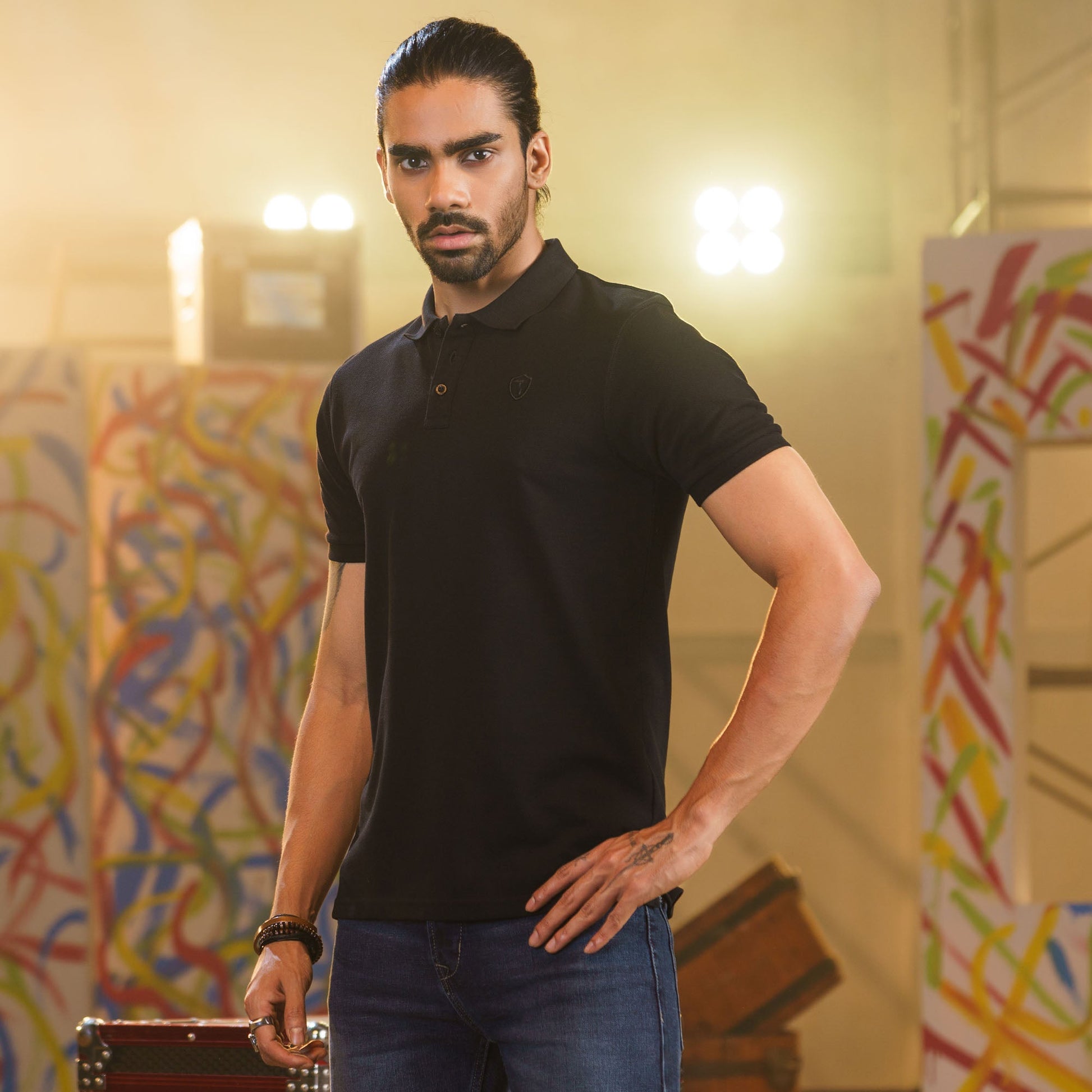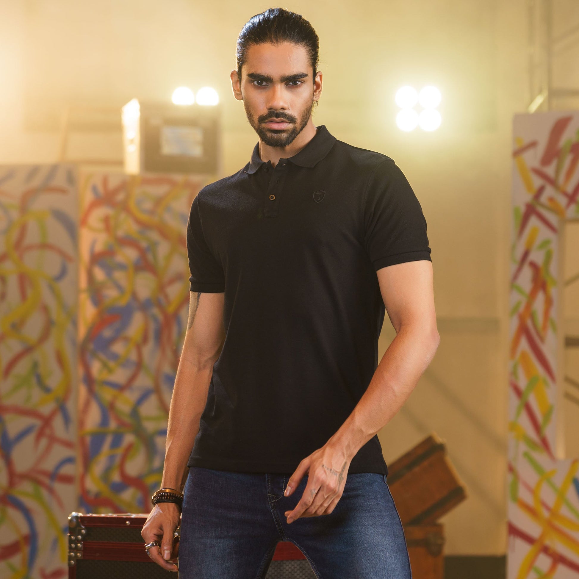 This slim-fit black polo shirt offers a perfect blend of simplicity and sophistication, crafted from a 50% cotton and 50% polyester fabric. The classic design is enhanced with logo embroidery on the chest, adding a touch of refinement. Ideal for a range of occasions, it provides a comfortable fit and timeless style. A versatile addition to any wardrobe, suitable for both casual and semi-formal settings.