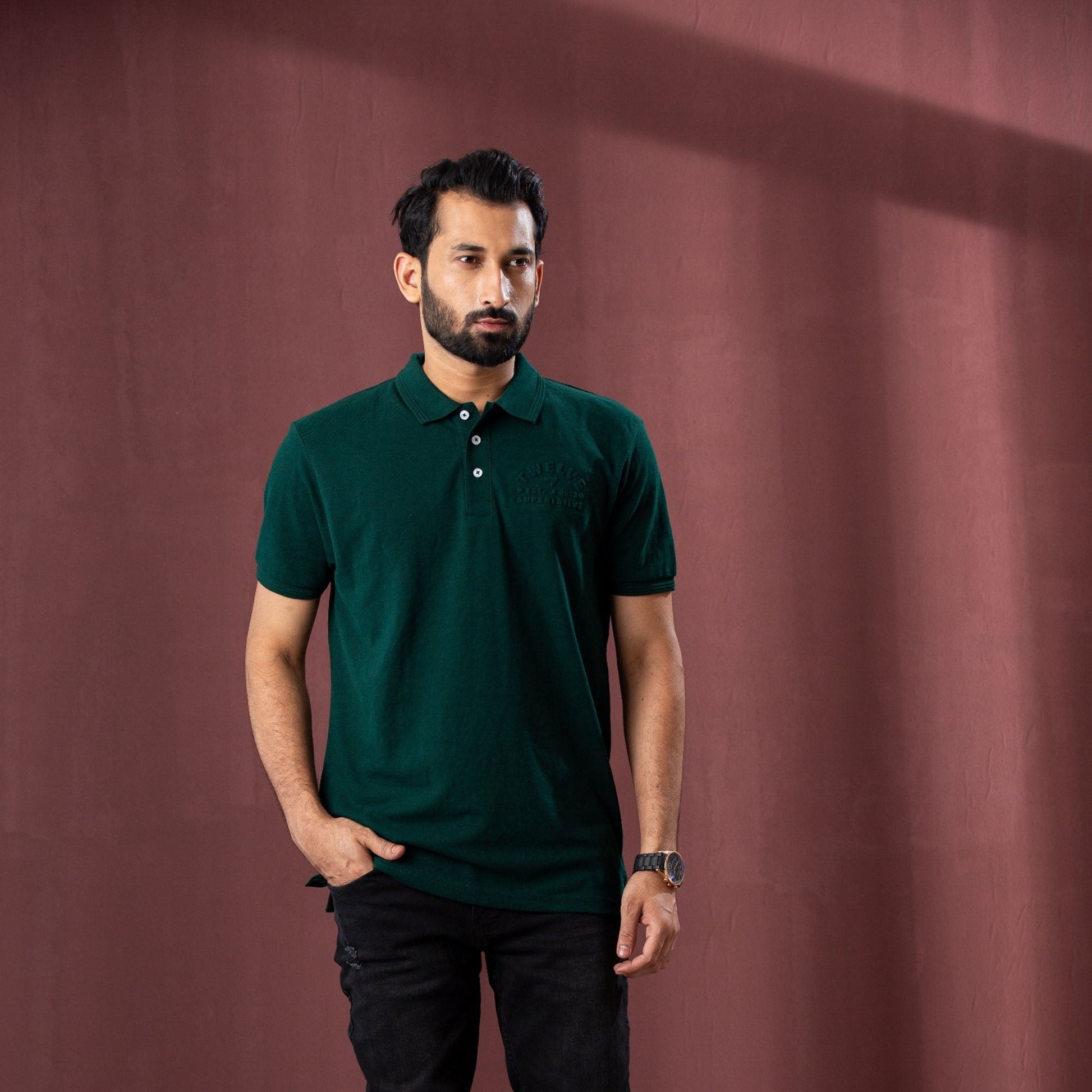 This slim-fit green polo shirt offers a perfect blend of comfort and style, crafted from high-quality Sairo Pique fabric for a refined look. The simple design is accented with a logo embossed on the chest, adding a touch of sophistication. Its comfortable fit makes it ideal for all-day wear, whether for casual outings or more polished occasions. A versatile and timeless addition to any wardrobe.