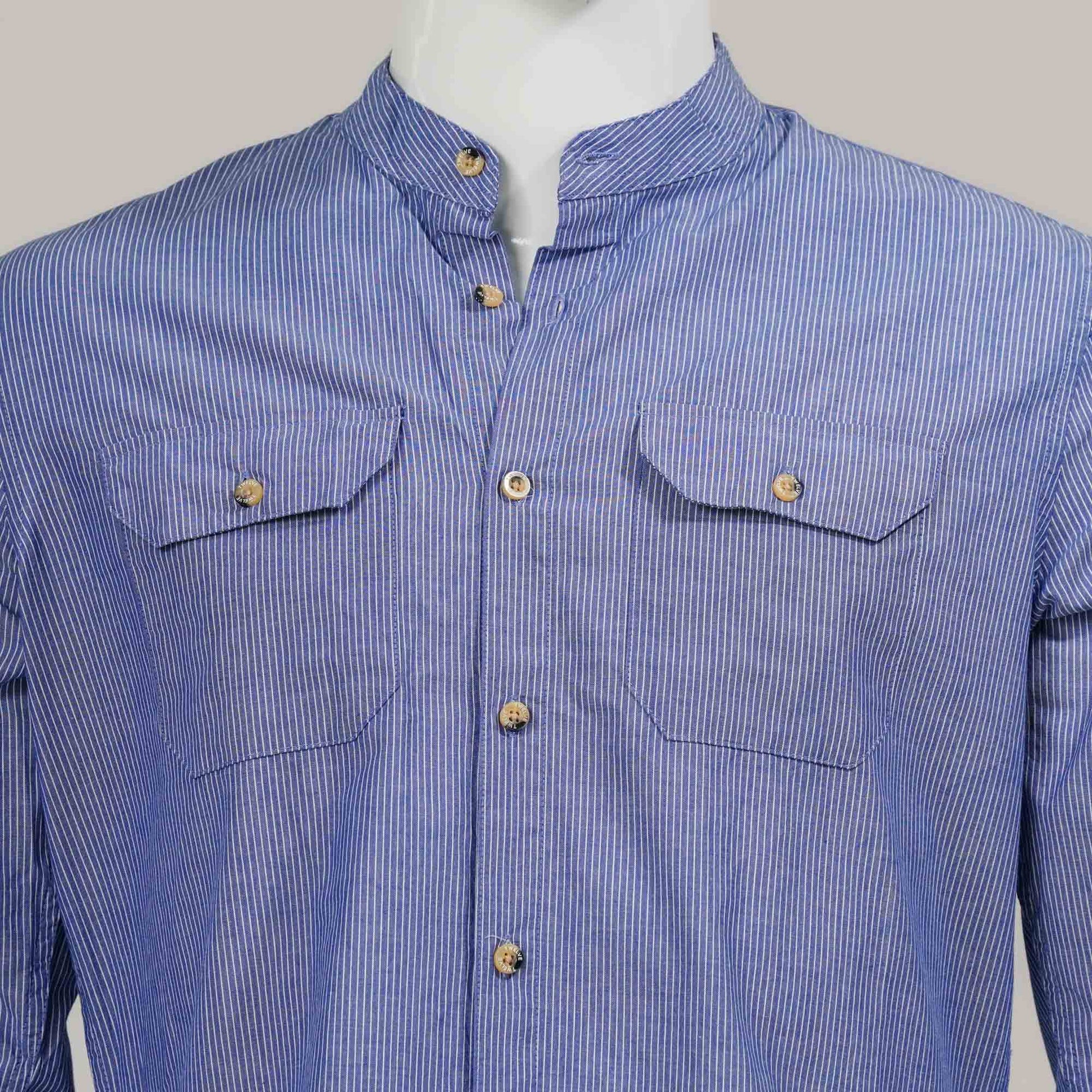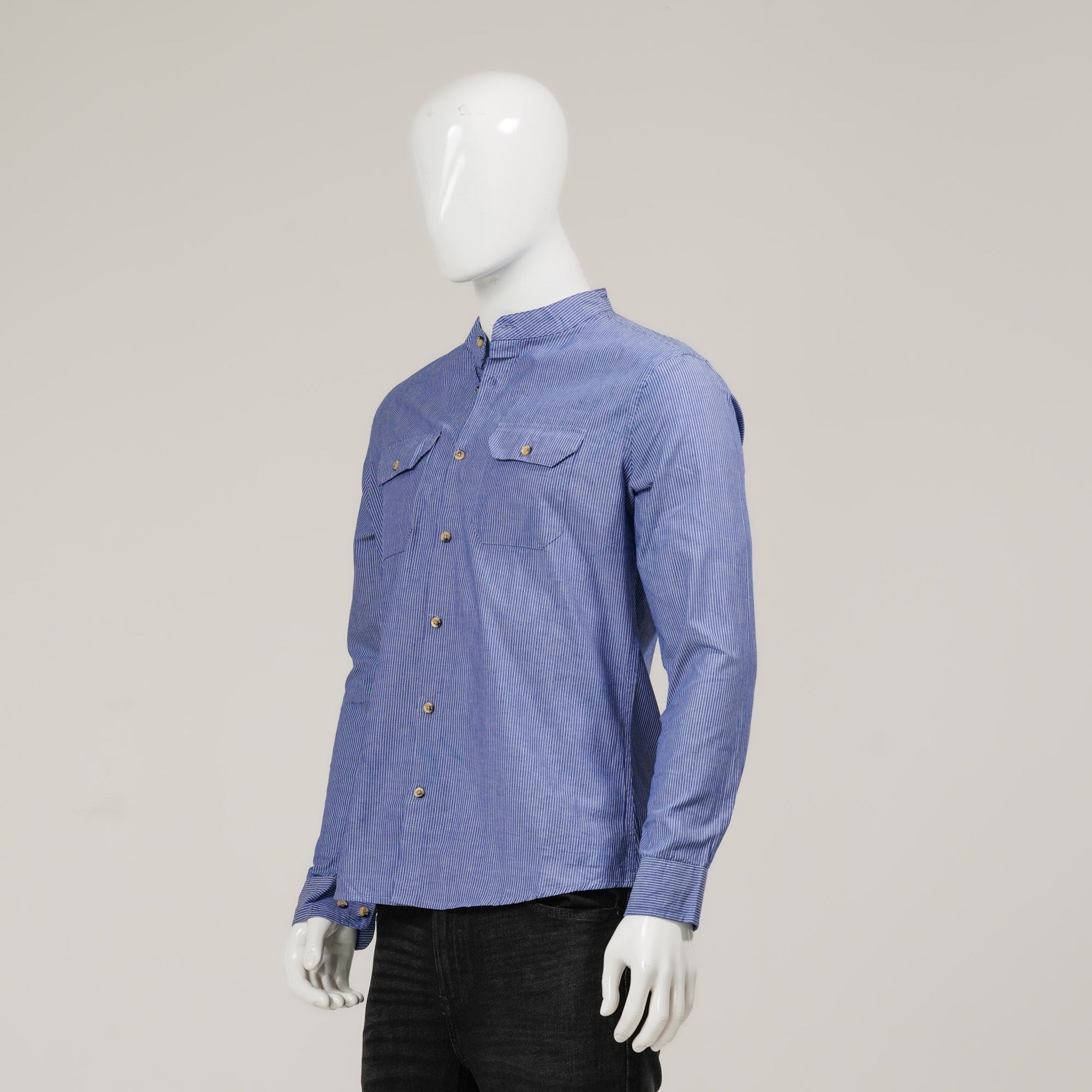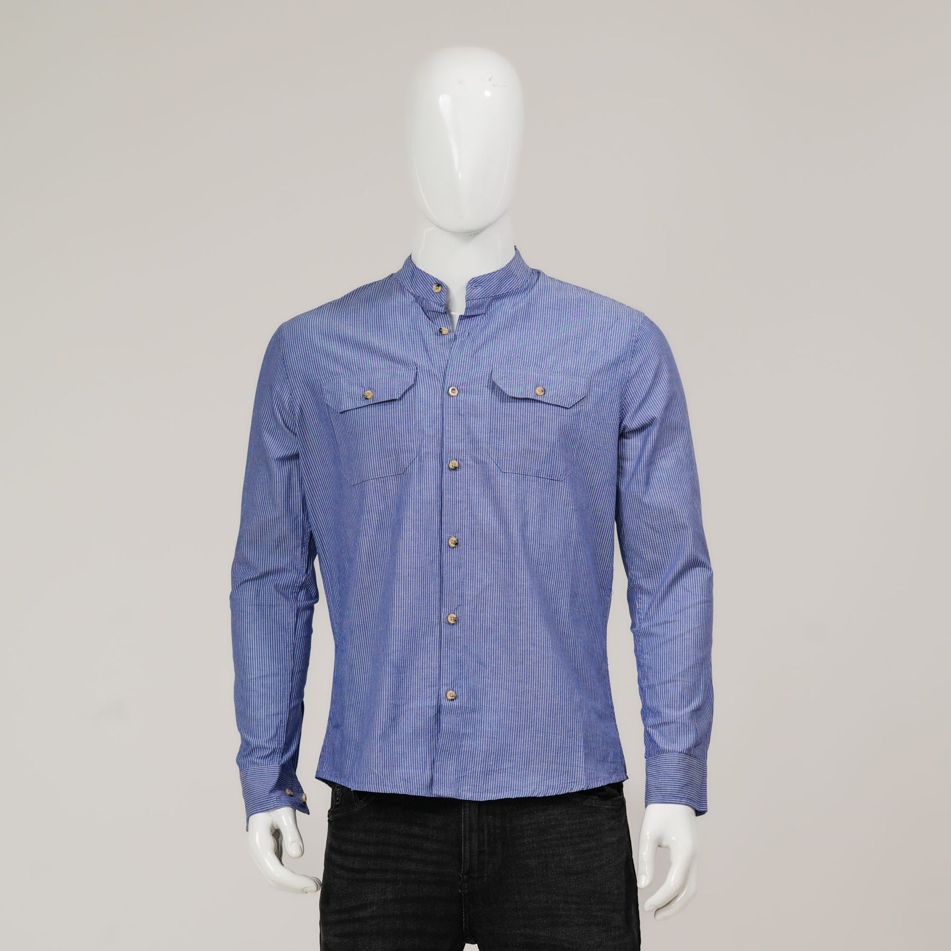 This men’s long-sleeve shirt is made from 100% cotton, offering a soft, breathable feel for comfort throughout the day. Featuring a classic blue striped pattern, it adds a stylish touch to both casual and semi-formal looks. Ideal for office wear, dinner outings, or weekend gatherings.