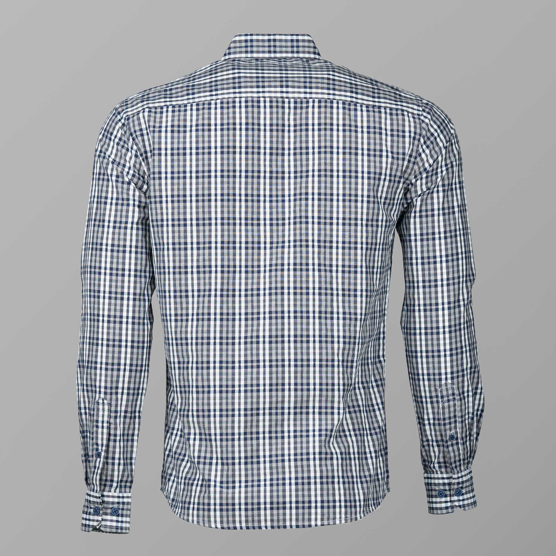 Stylish mens long-sleeve check shirt in a classic blue and white combination. Crafted from soft blended fabric for a comfortable fit and lasting wear. Designed with a versatile look, perfect for casual outings, office wear, or semi-formal occasions. A timeless wardrobe essential with modern appeal.