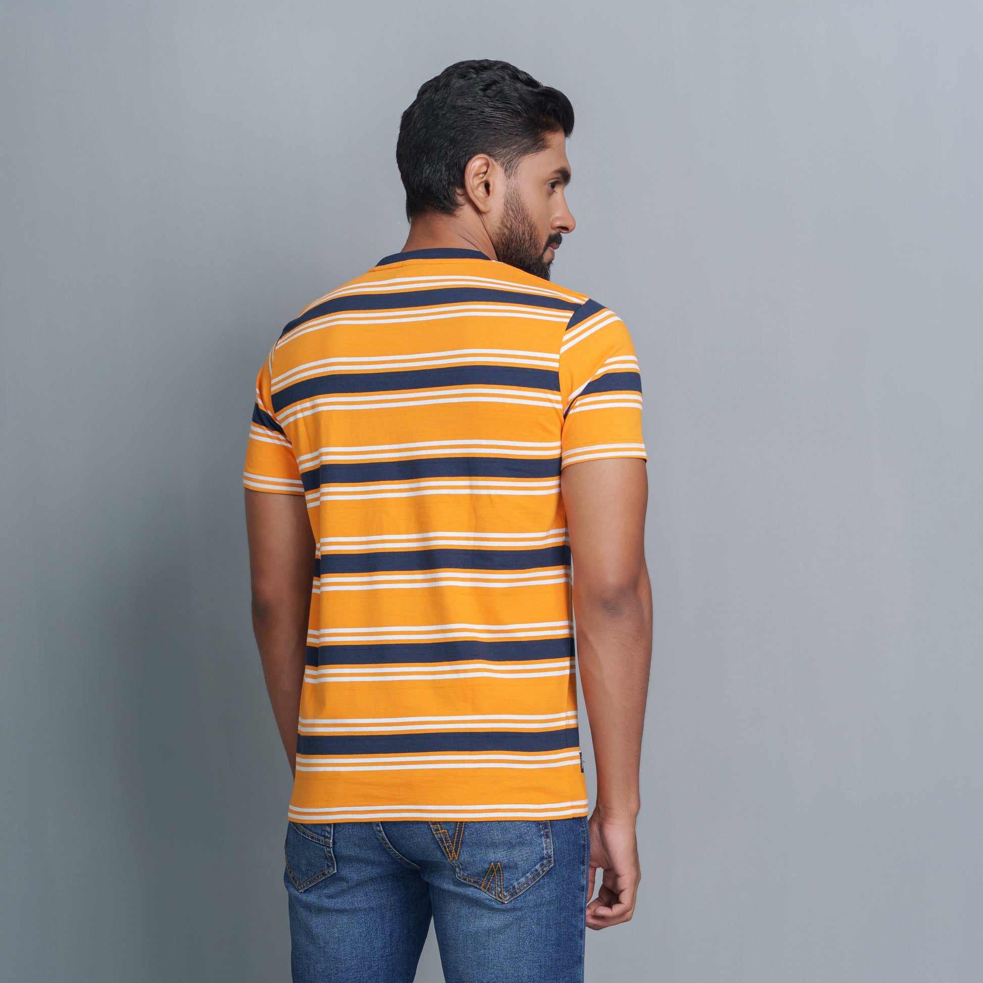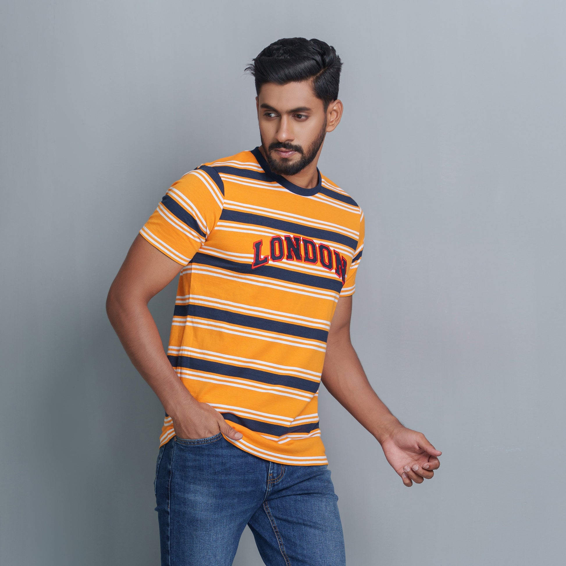 Add a pop of color to your wardrobe with this yellow t-shirt, featuring yarn-dyed stripes and an applique detail at the front. Made from 100% cotton and designed in a slim fit, this tee offers both comfort and style, making it an ideal choice for casual wear. Embrace vibrant fashion with this standout piece.