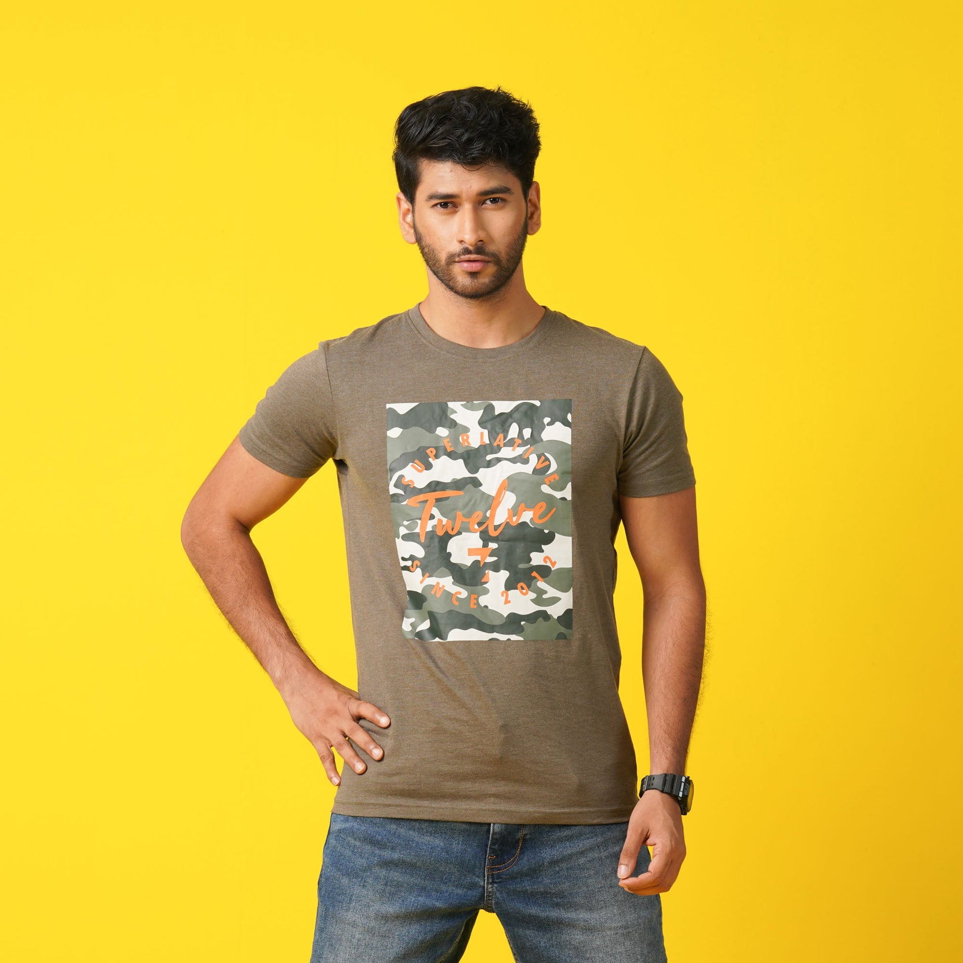 Unleash your playful side with this quirky MENS T-SHIRT in a soulful shade of olive. Timeless and versatile, this shirt is a must-have for any casual wardrobe. Show off your unique style with this fun and comfortable tee.