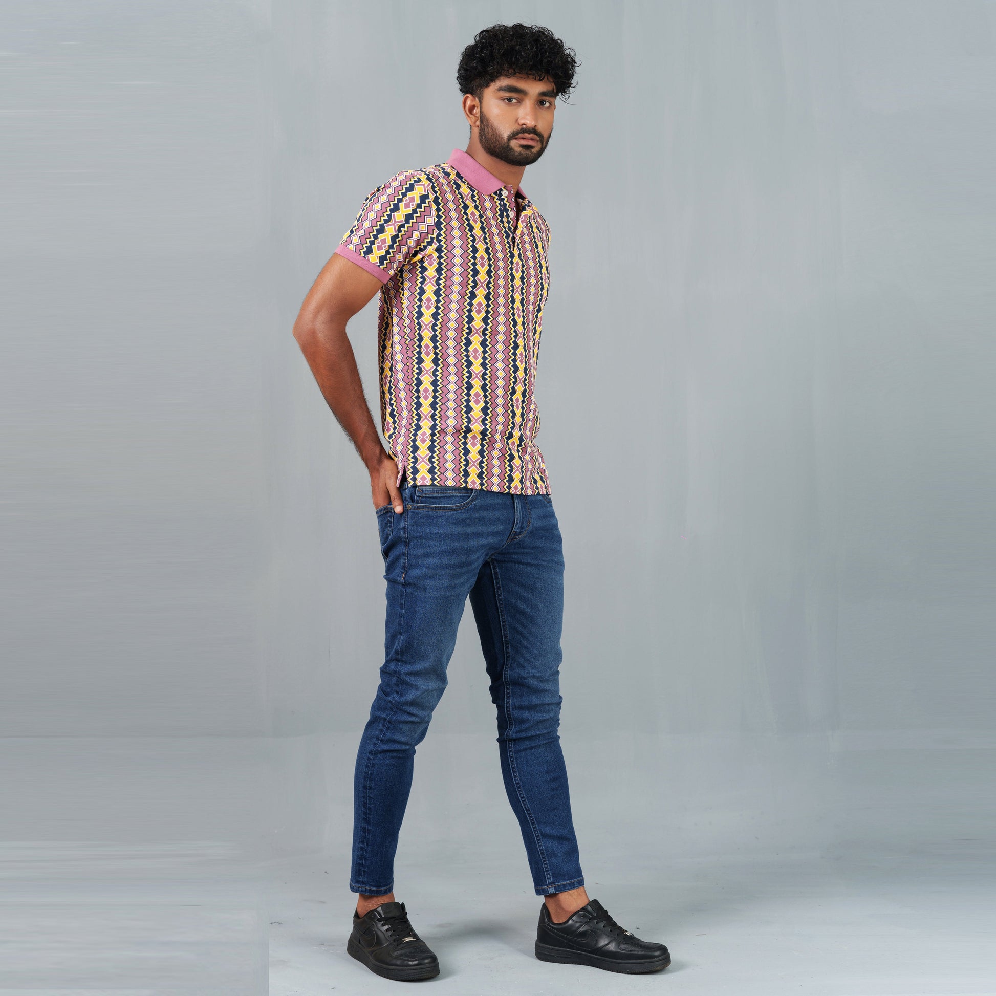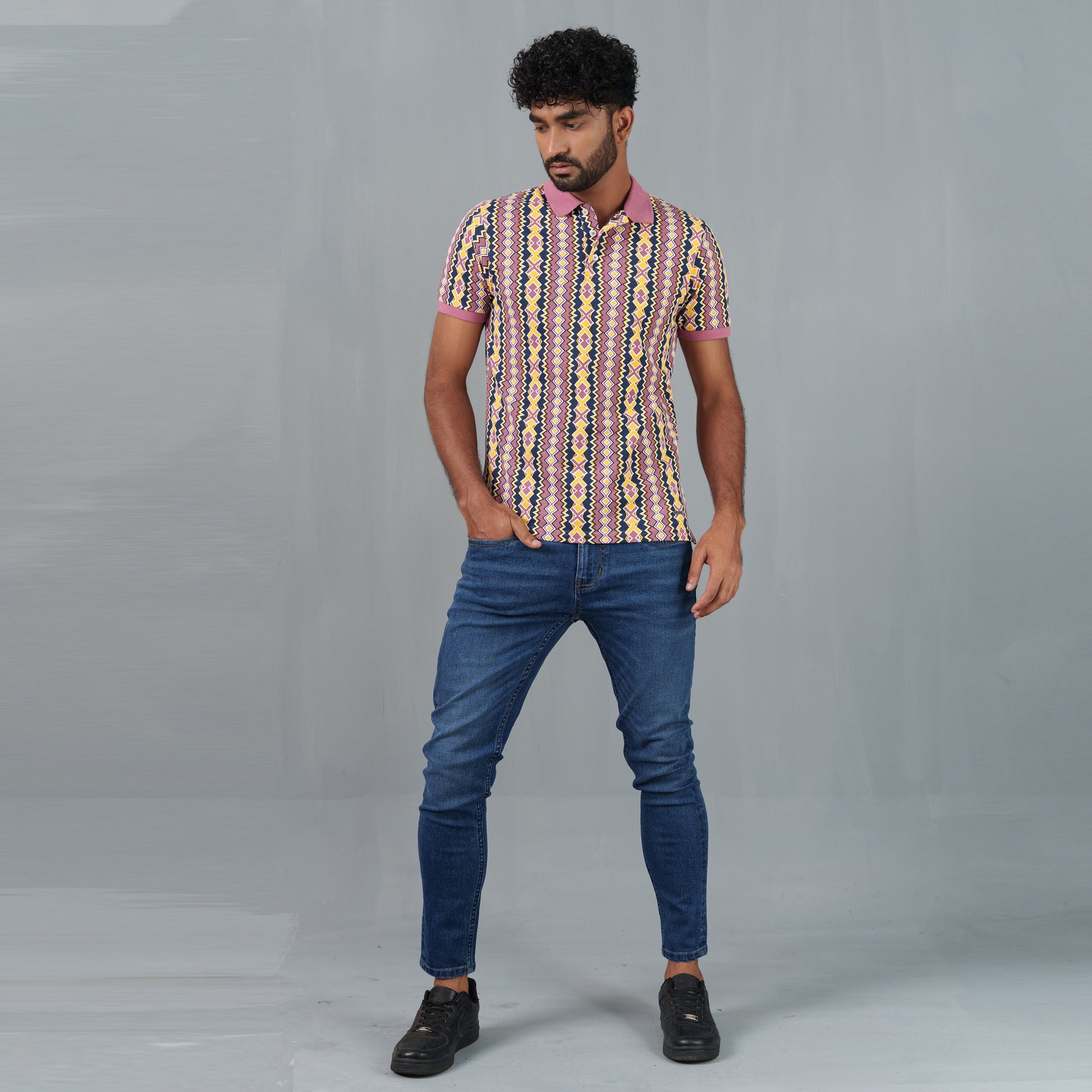 This men’s soft polo features a subtle print with matching buttons. Made from 100% cotton pique, it offers a slim fit and is designed in a light pink color for a stylish yet comfortable look. Ideal for both casual and semi-formal occasions.