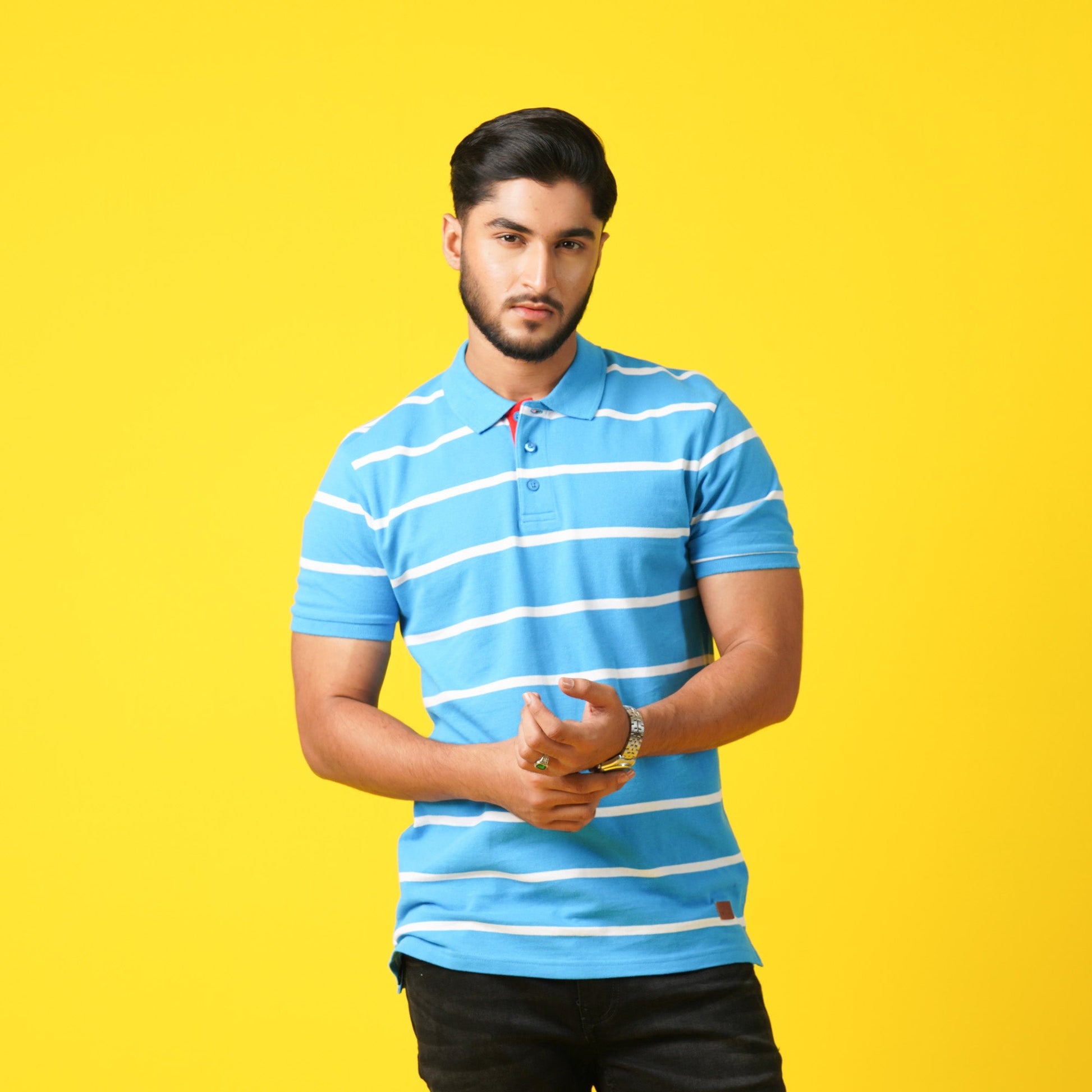 Men's Blue Striped Polo