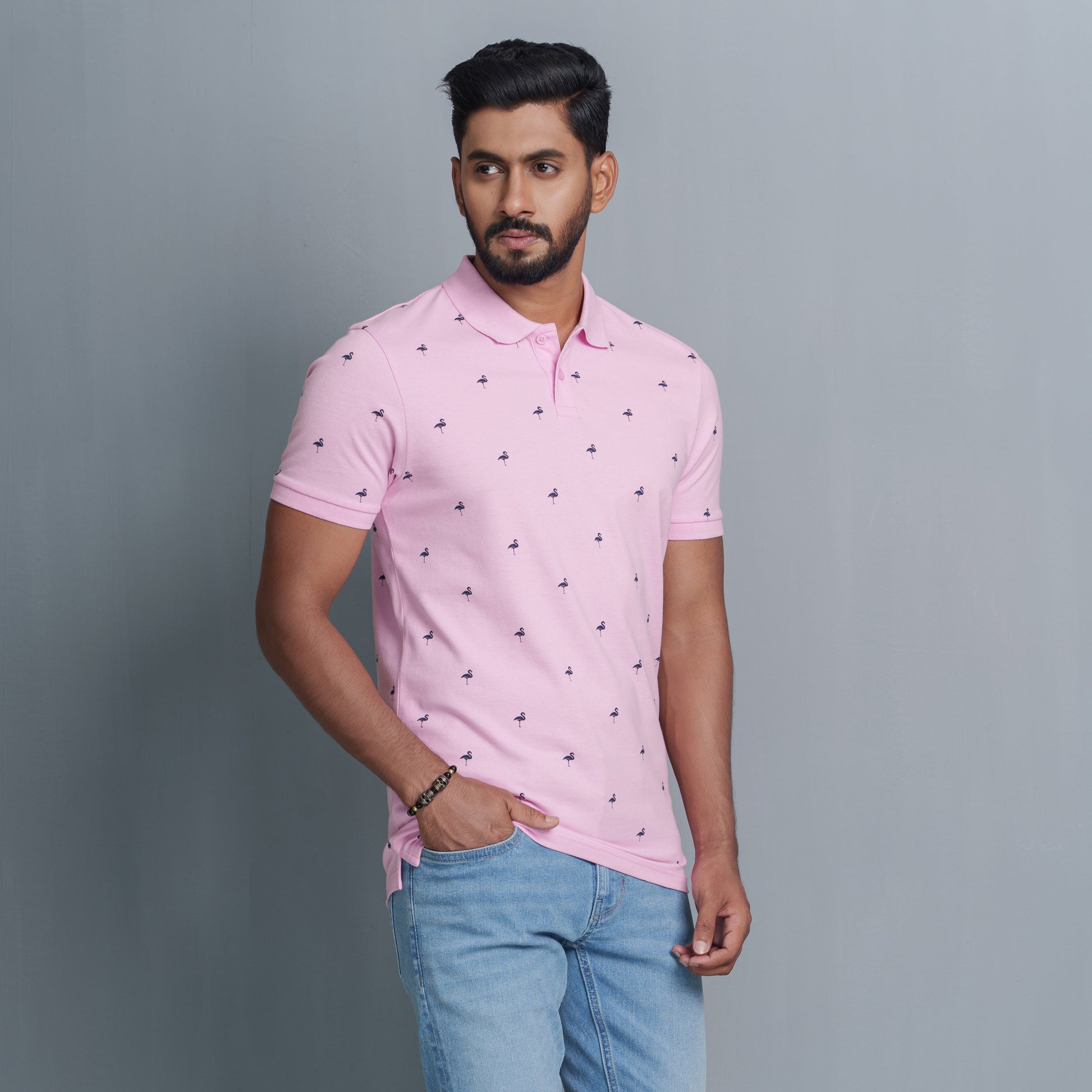 Elevate your casual style with this soft printed polo. Crafted from 100% cotton pique, it features a slim fit for a modern look. The light pink shade adds a fresh touch, while the DTM button detail enhances its design. Perfect for a relaxed yet stylish appearance.