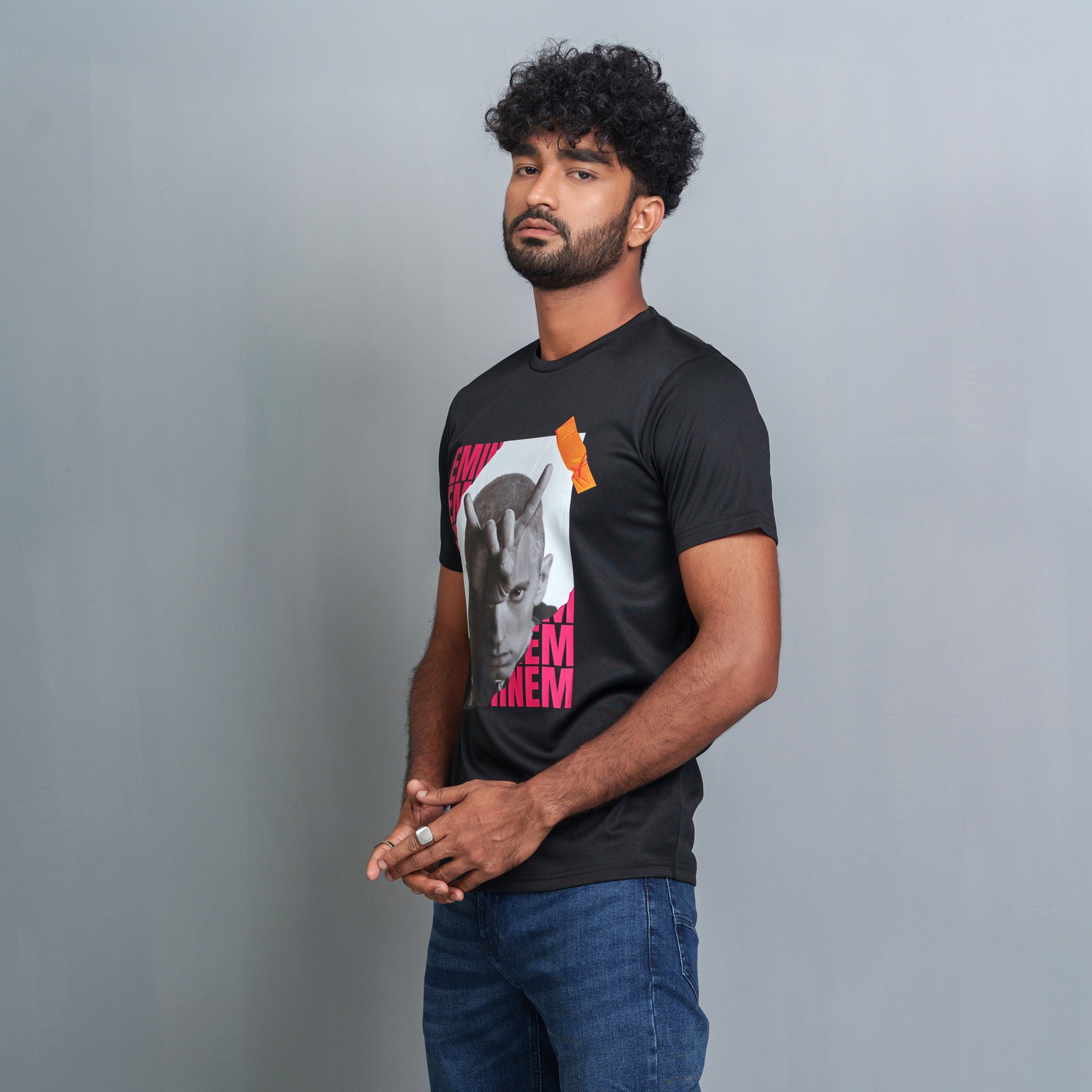 Brighten up your look with this black t-shirt, featuring a vibrant graphic on the front. Made from comfortable polyester fabric and designed with a slim fit, this tee offers both style and ease, making it a standout choice for casual outings and everyday wear. Embrace comfort and bold design in one versatile piece.