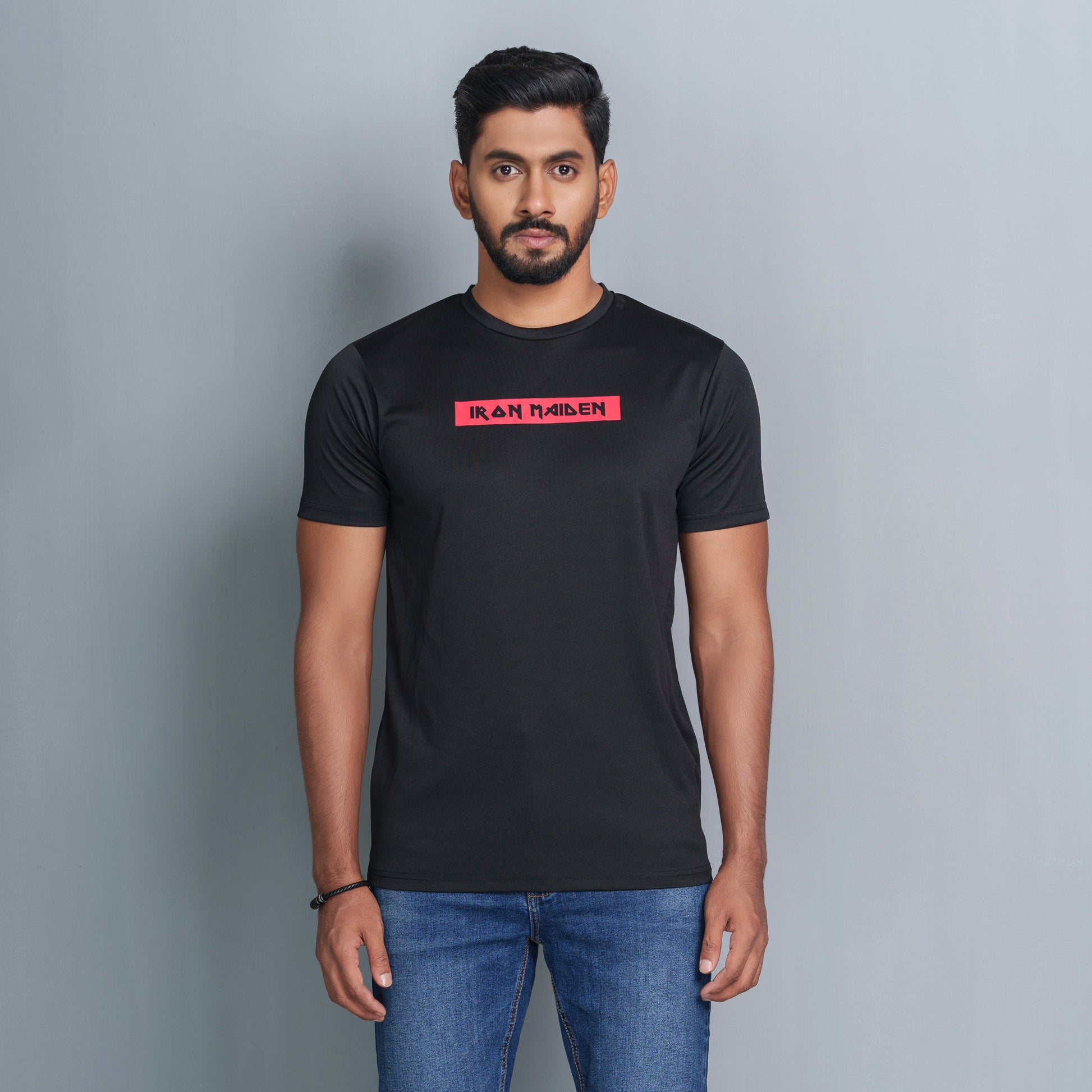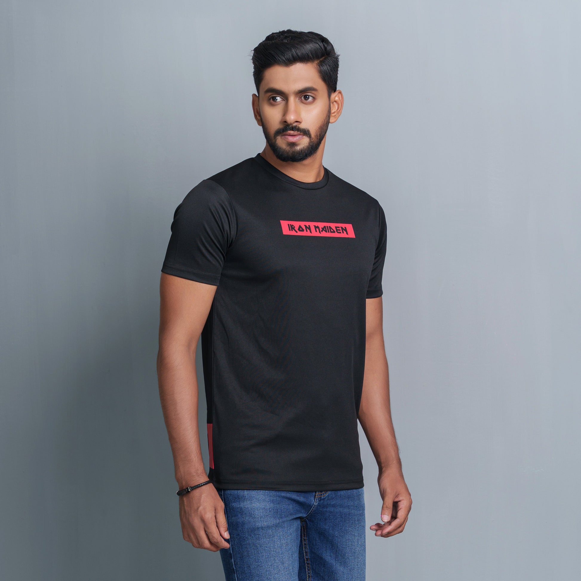 Experience ultimate comfort with this black t-shirt, featuring a striking graphic at the front. Made from soft polyester and designed with a slim fit, this tee offers a modern look and all-day ease, making it perfect for casual wear or lounging. Upgrade your wardrobe with this stylish and comfortable piece.